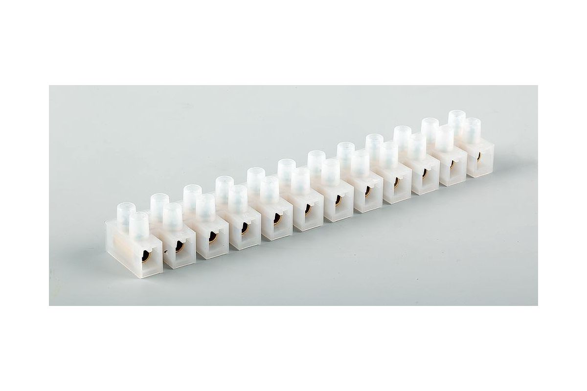 в применении, обеспечивают надежный контакт и обладают достаточно низкой ценой. Они могут устанавливаться общей планкой по 12 пар, что делает их отличной заменой для барьерных соединений. Также планку можно разделить на группы и использовать в установочных и распределительных коробках или в качестве временных соединений. Номинальное напряжение - 450V. Номинальный ток - 10-57А. Количество контактов - 12. Материал присоединяемых проводников - латунь. Сечение проводников - 6-10мм?. Температура окружающей среды - до 60° C.