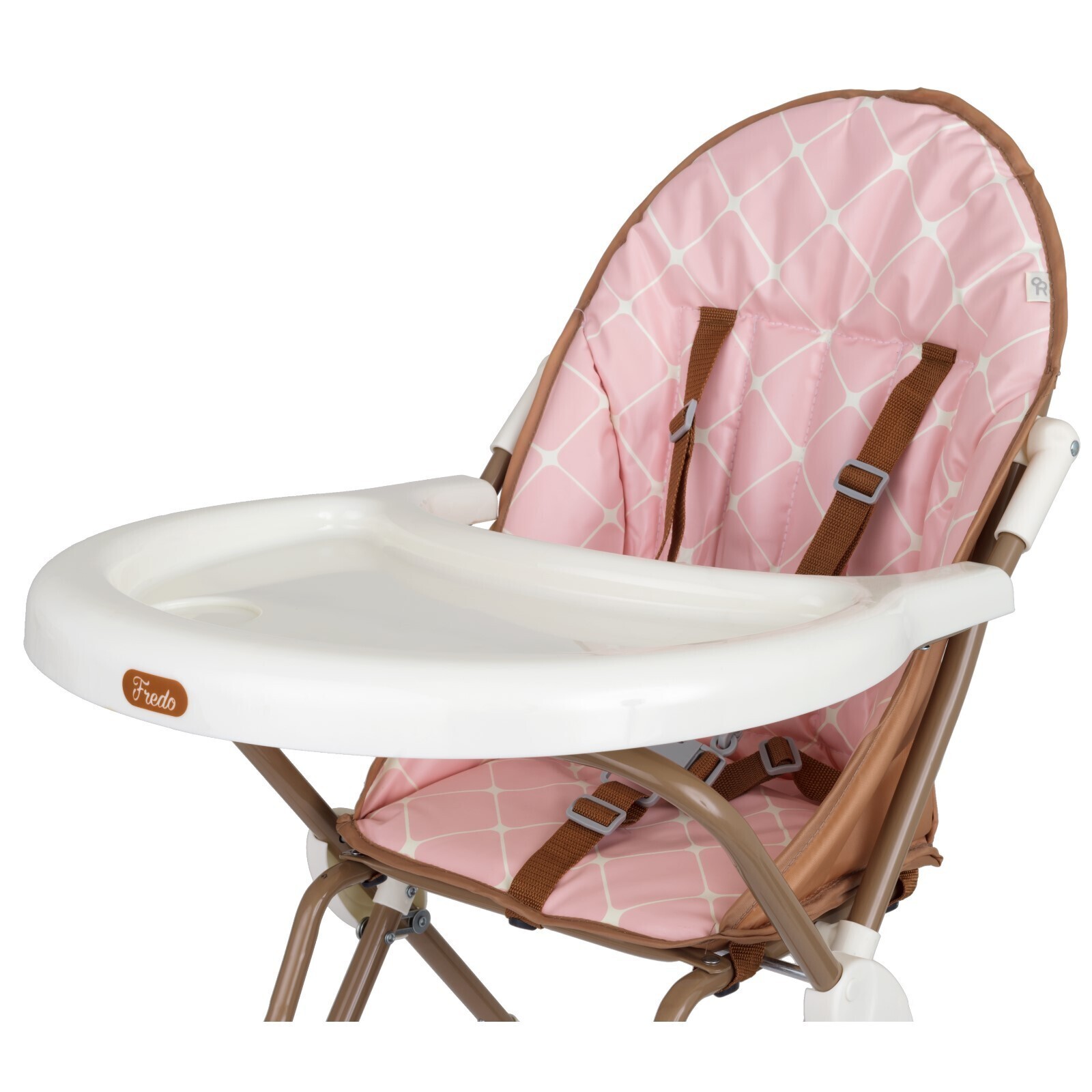 Столешница, подножка, ремни и пластиковые элементы стульчика выполнены в одном цвете, что делает модель еще эффектнее.
