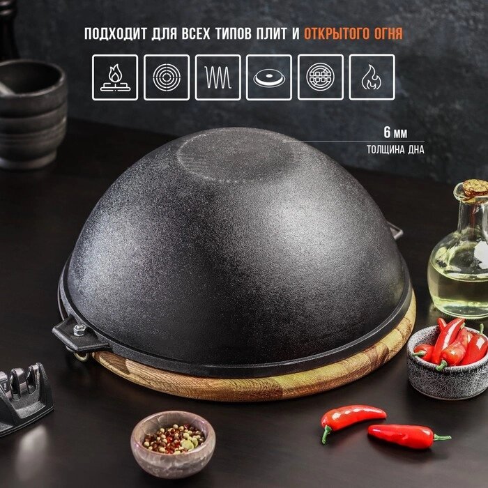 Котёл литой чугунный Magma, 5 л, с дужкой, крышка-сковорода