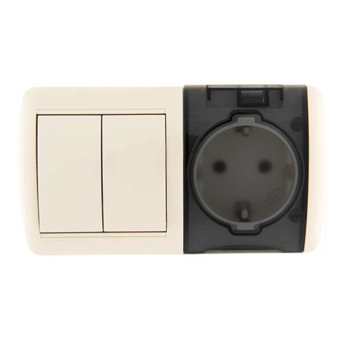 Выключатель двойной и розетка с крышкой Lezard Nat...