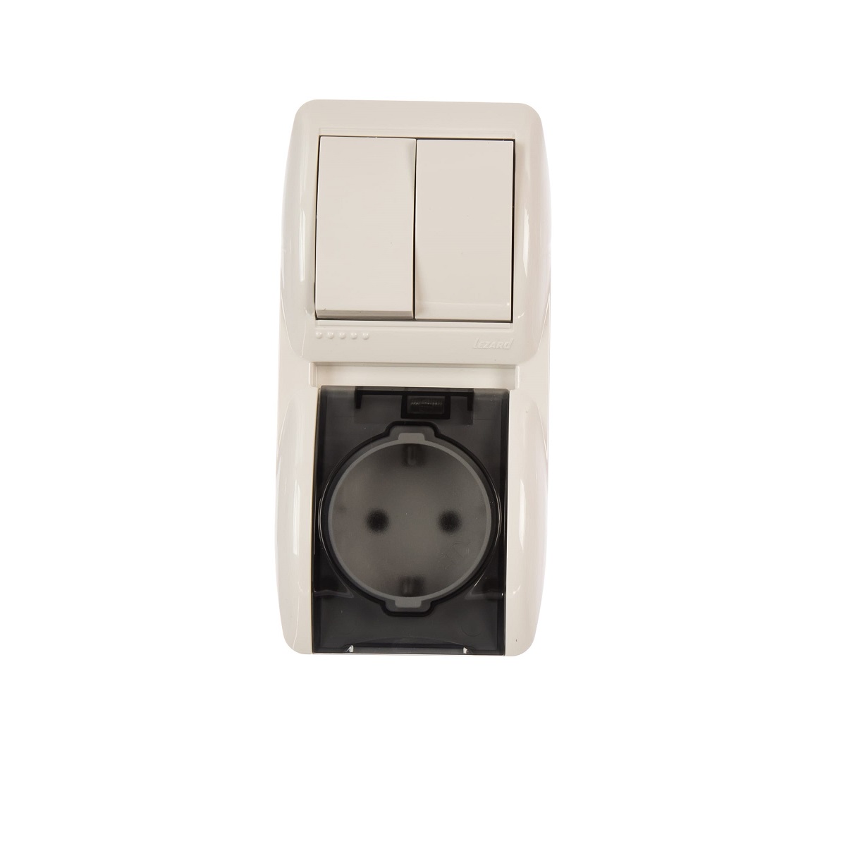 Выключатель двойной и розетка с крышкой Lezard Nat...