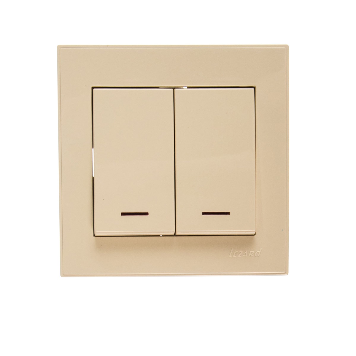 Выключатель двойной с подсветкой Lezard Rain кремо...