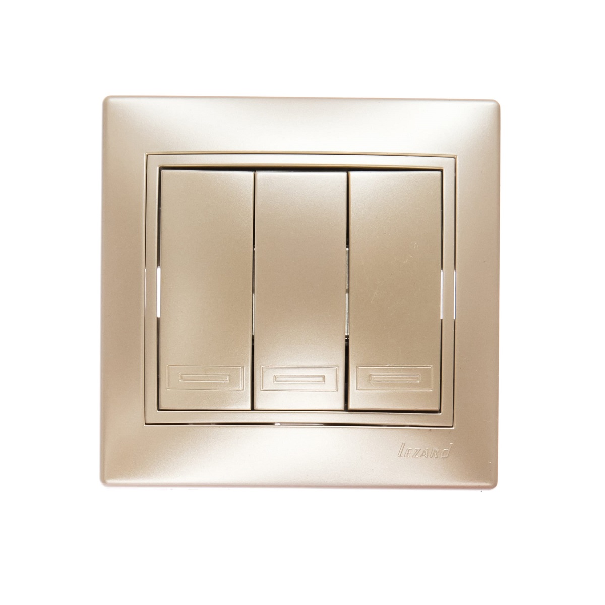 Выключатель тройной Lezard Mira белый жемчуг со вс...