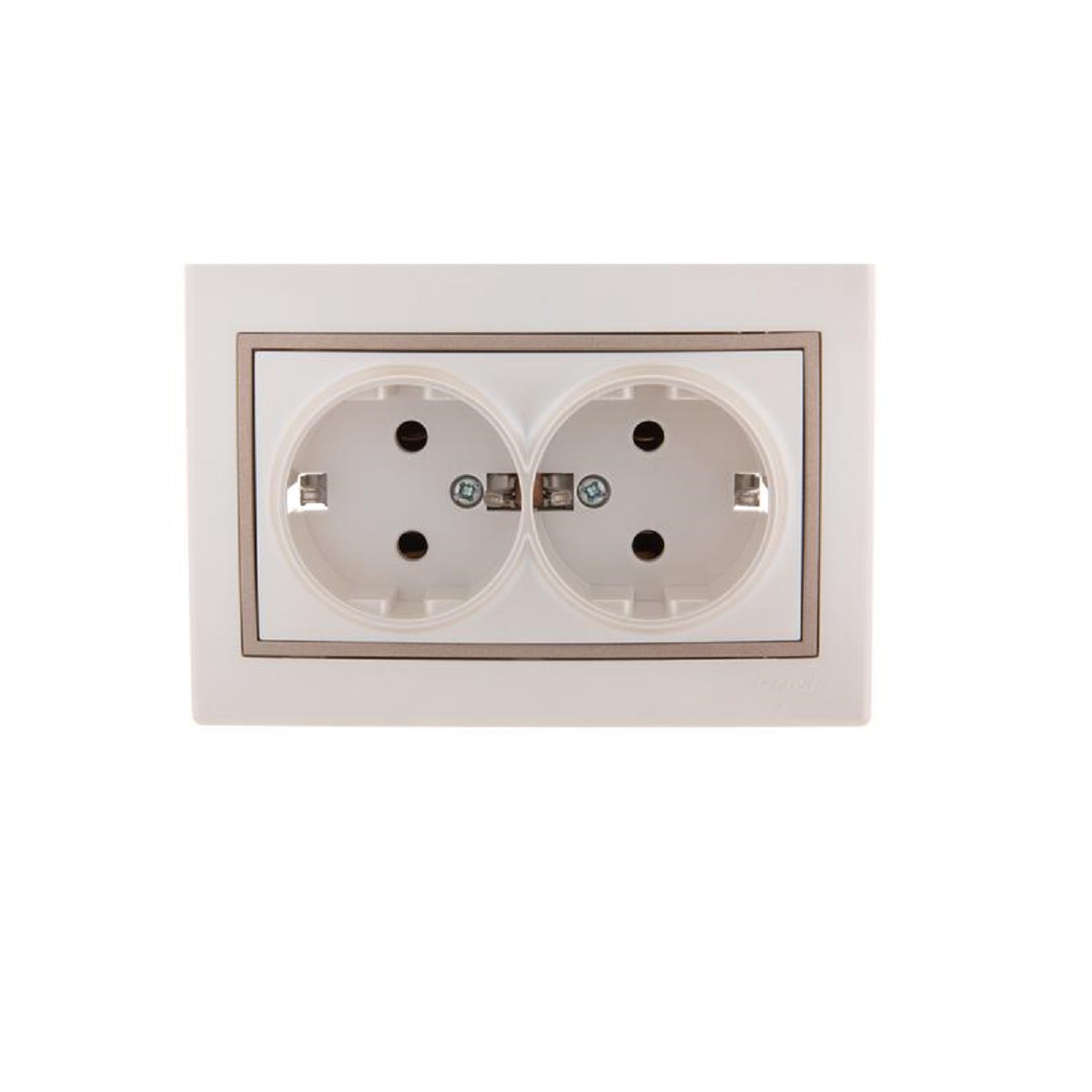Розетка 2-ая с зазем. Lezard Mira белый жемчуг с к...
