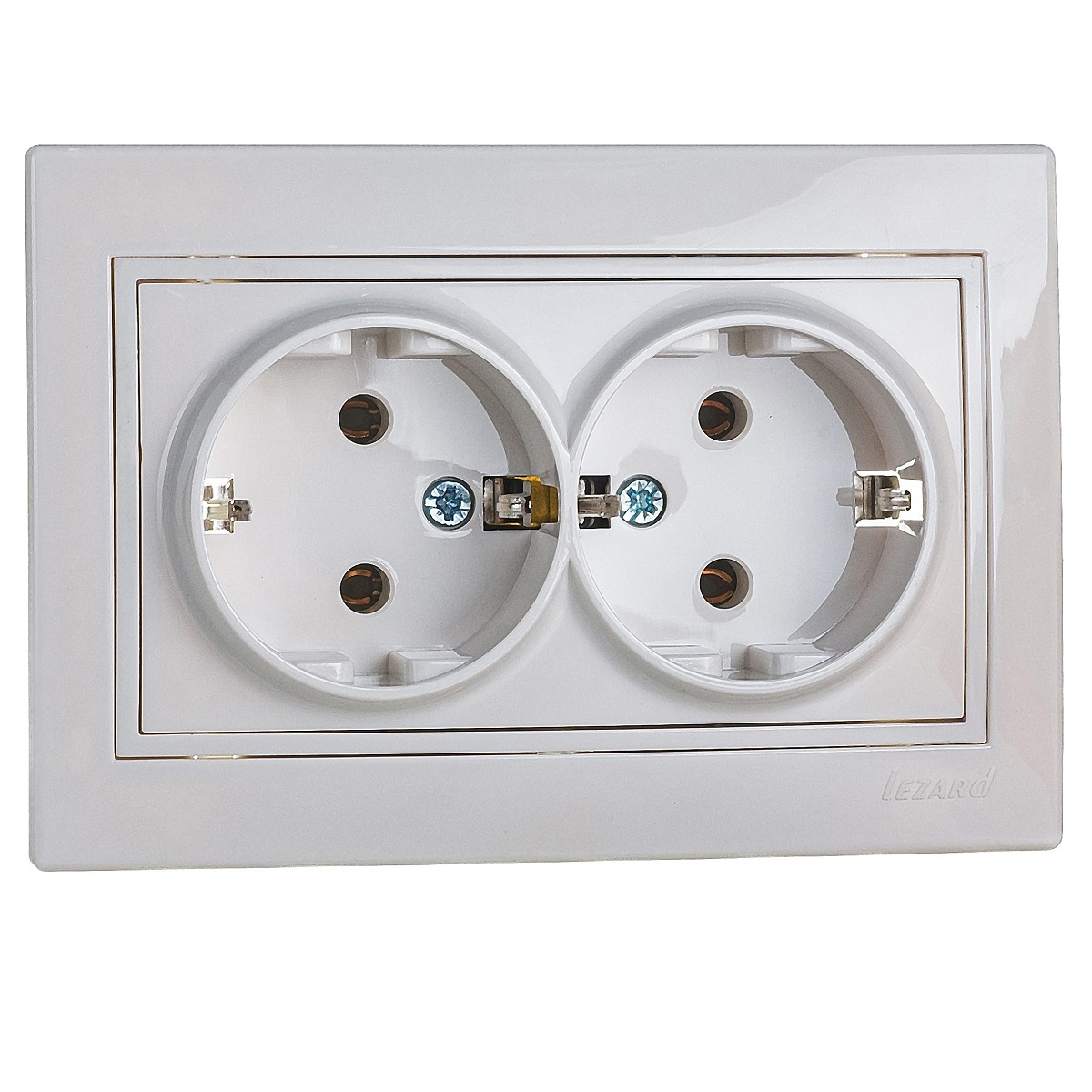 Розетка 2-ая с зазем. Lezard Mira белая с бел. вст...