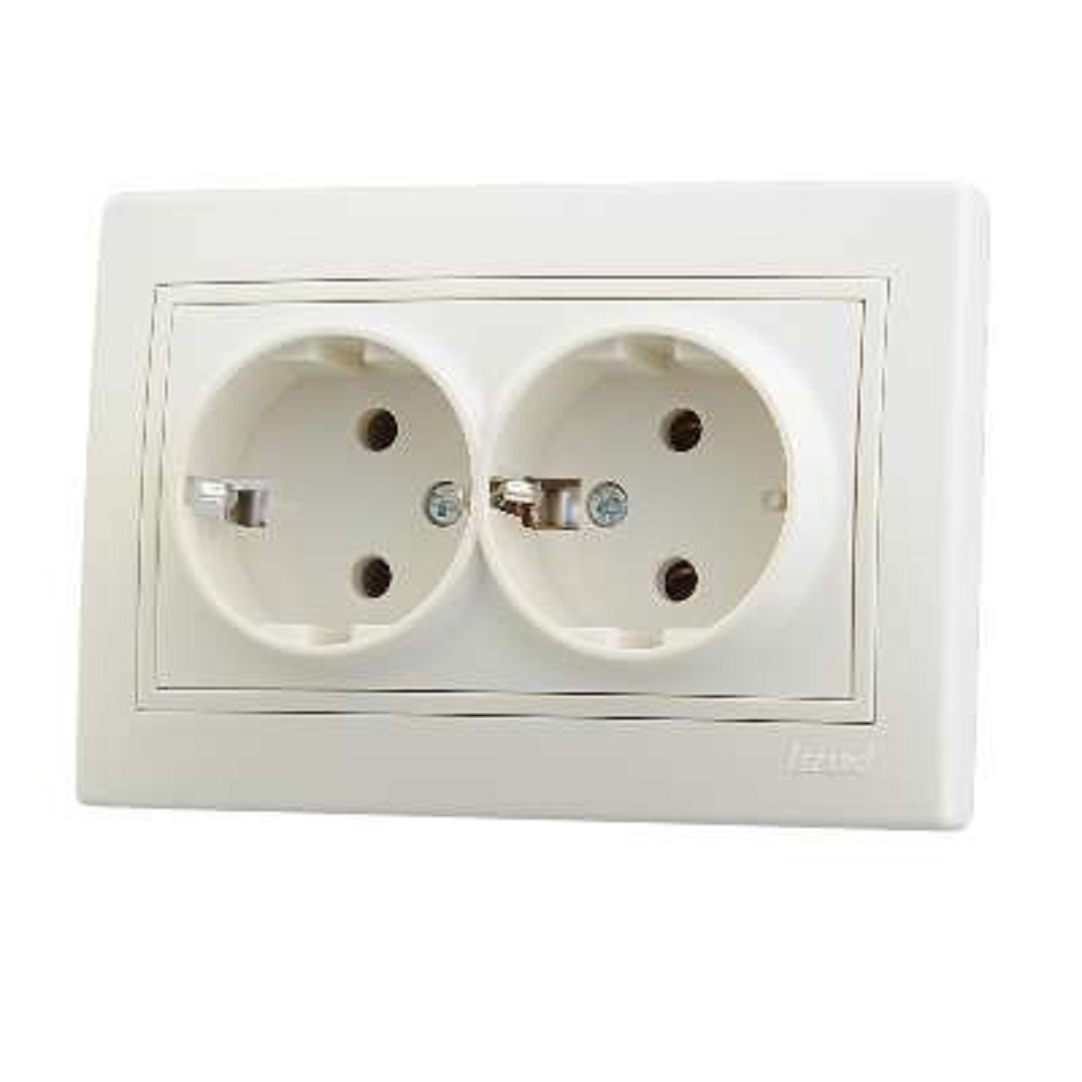 Розетка 2-ая с зазем. Lezard Mira кремовая 701-030...