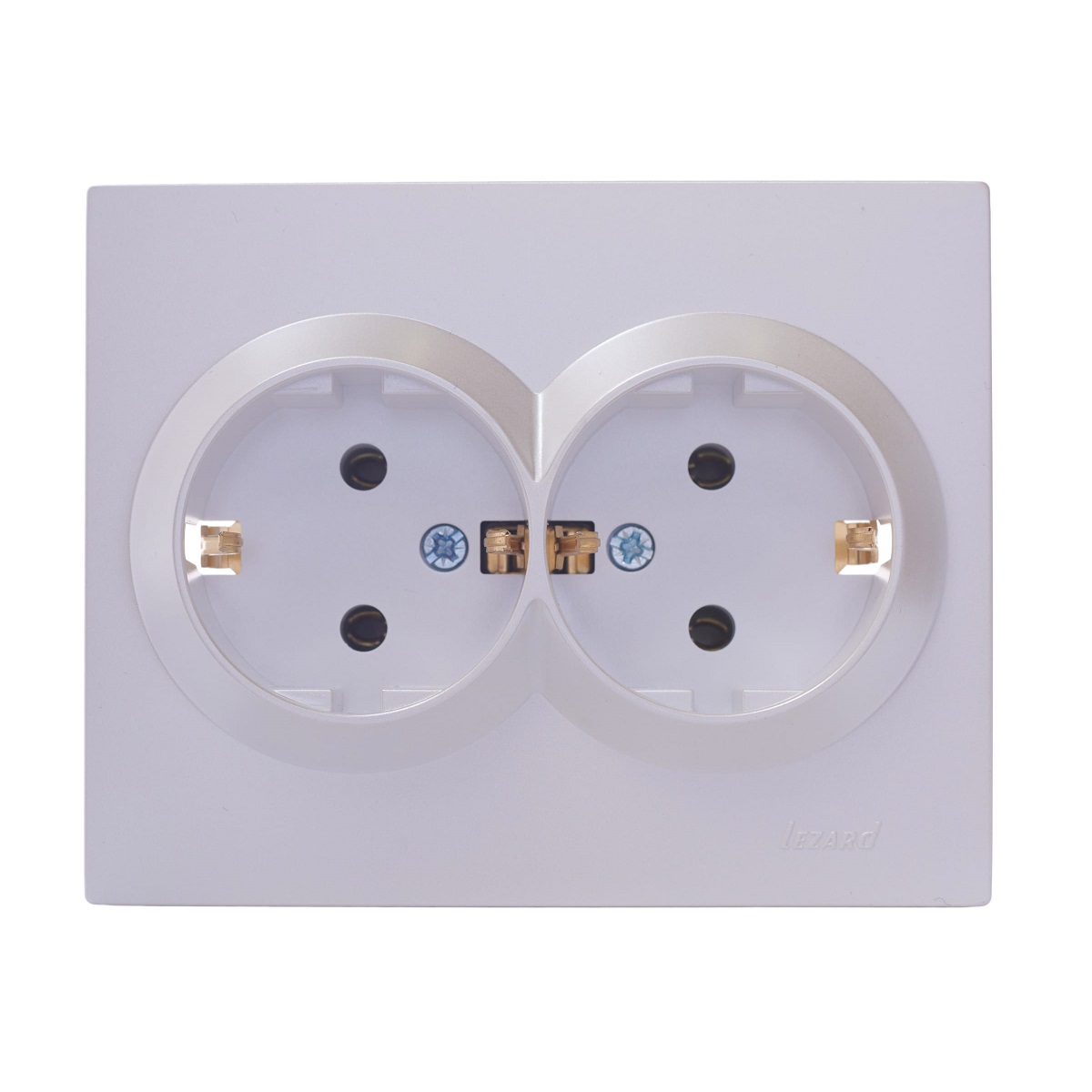 Розетка 2-ая с зазем. Lezard Vesna белый жемчуг 74...