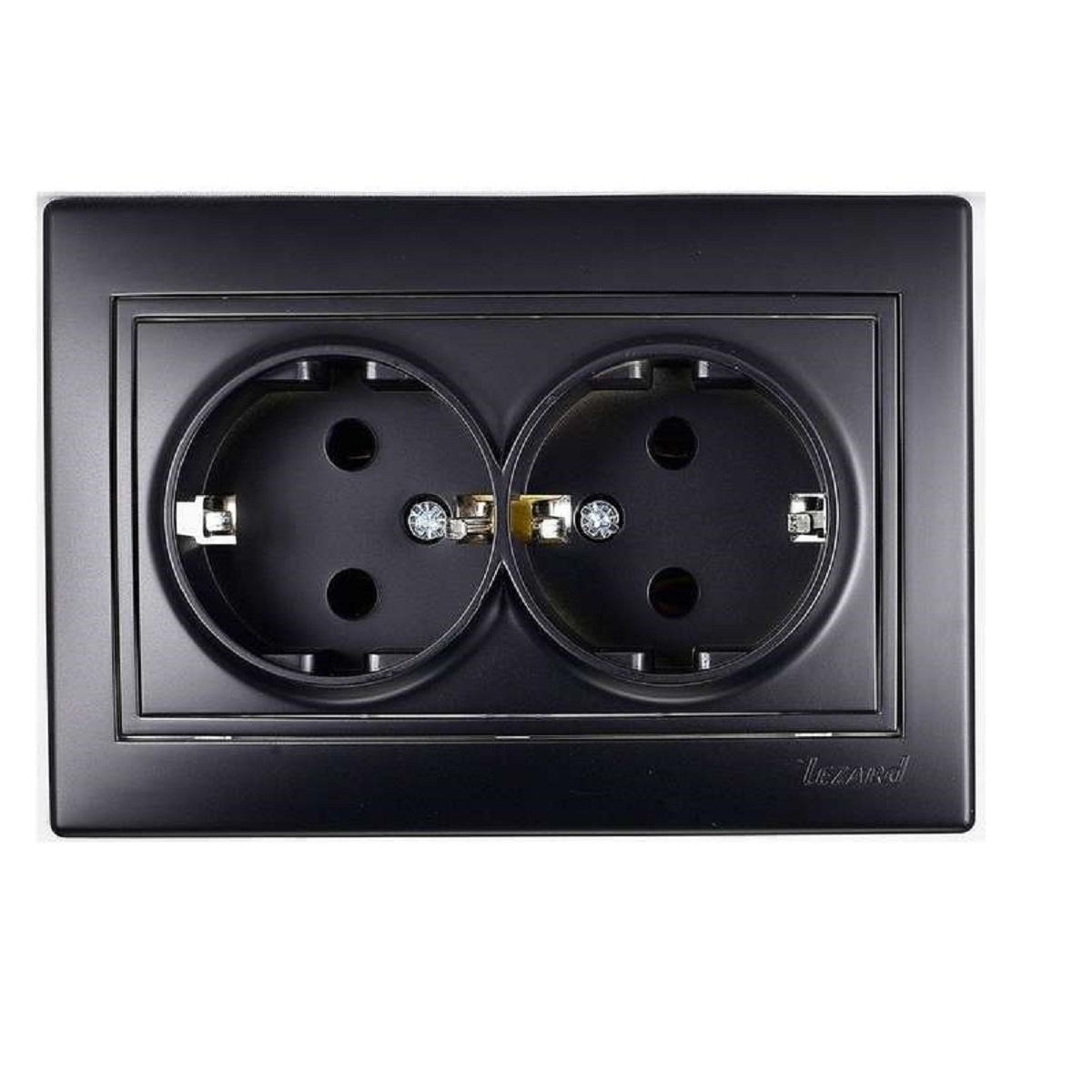 Розетка 2-ая с зазем. Lezard Mira черная 701-4242-...