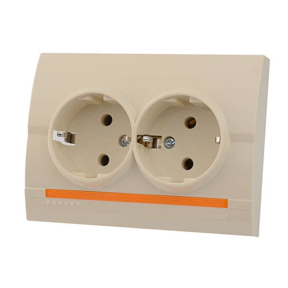 Розетка 2-ая с зазем. Lezard Deriy кремовая 702-03...