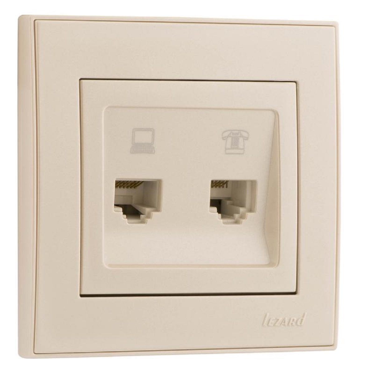 Розетка 2-ая комп. + тел. Lezard Rain белый жемчуг...