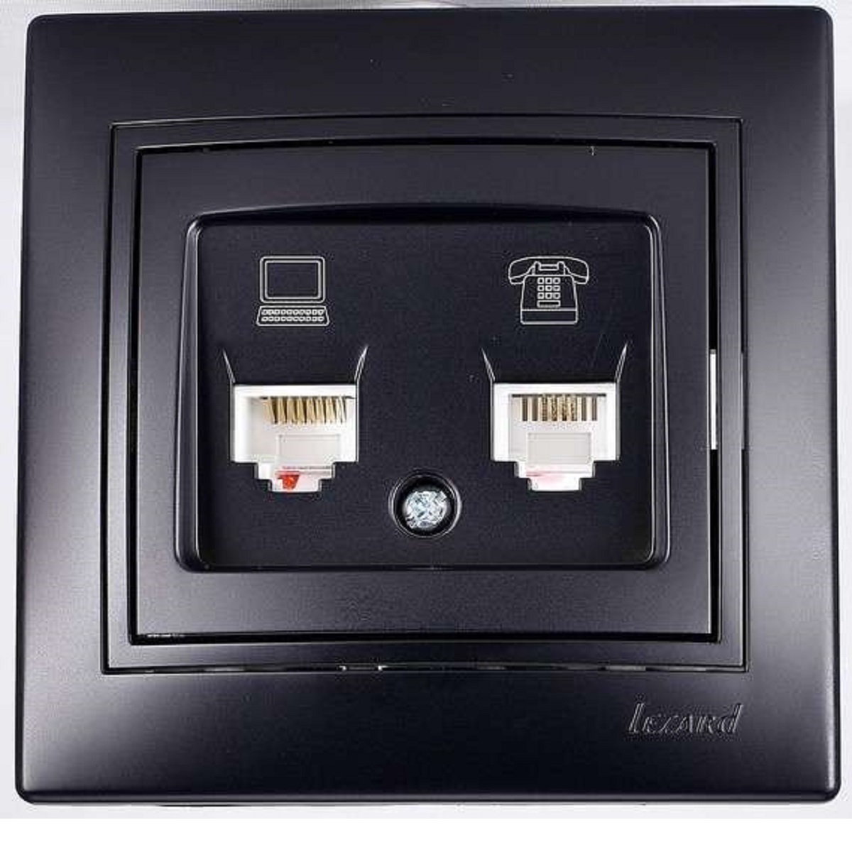 Розетка 2-ая комп. + тел. Lezard Mira черная 701-4...