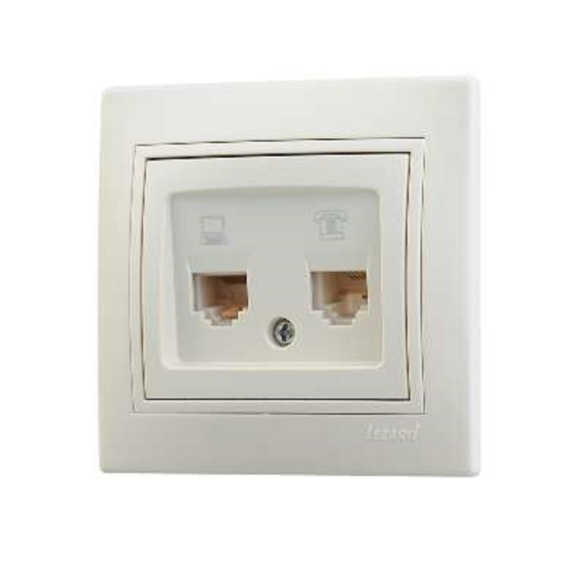 Розетка 2-ая комп. + тел. Lezard Mira кремовая 701...