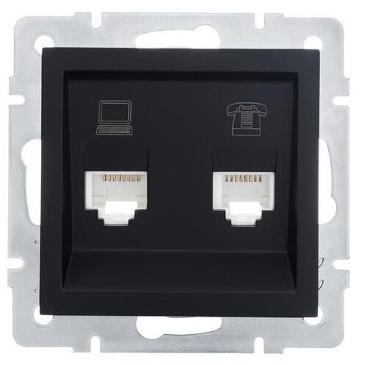 Розетка 2-ая комп. + тел. Lezard Vesna черная 742-...