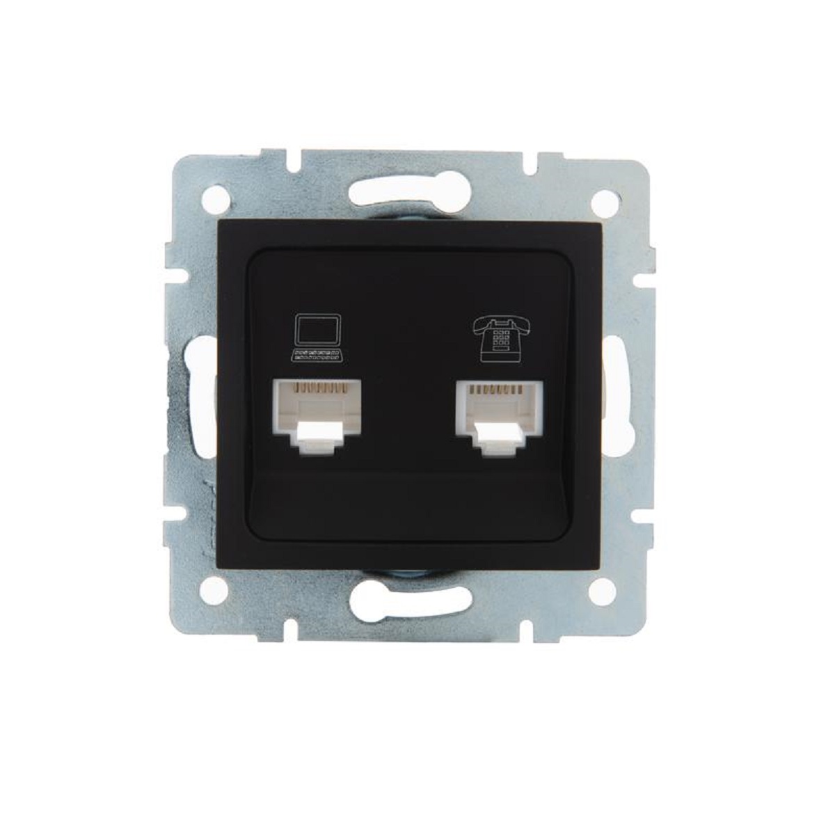 Розетка 2-ая комп. + тел. Lezard Karina черная 707...