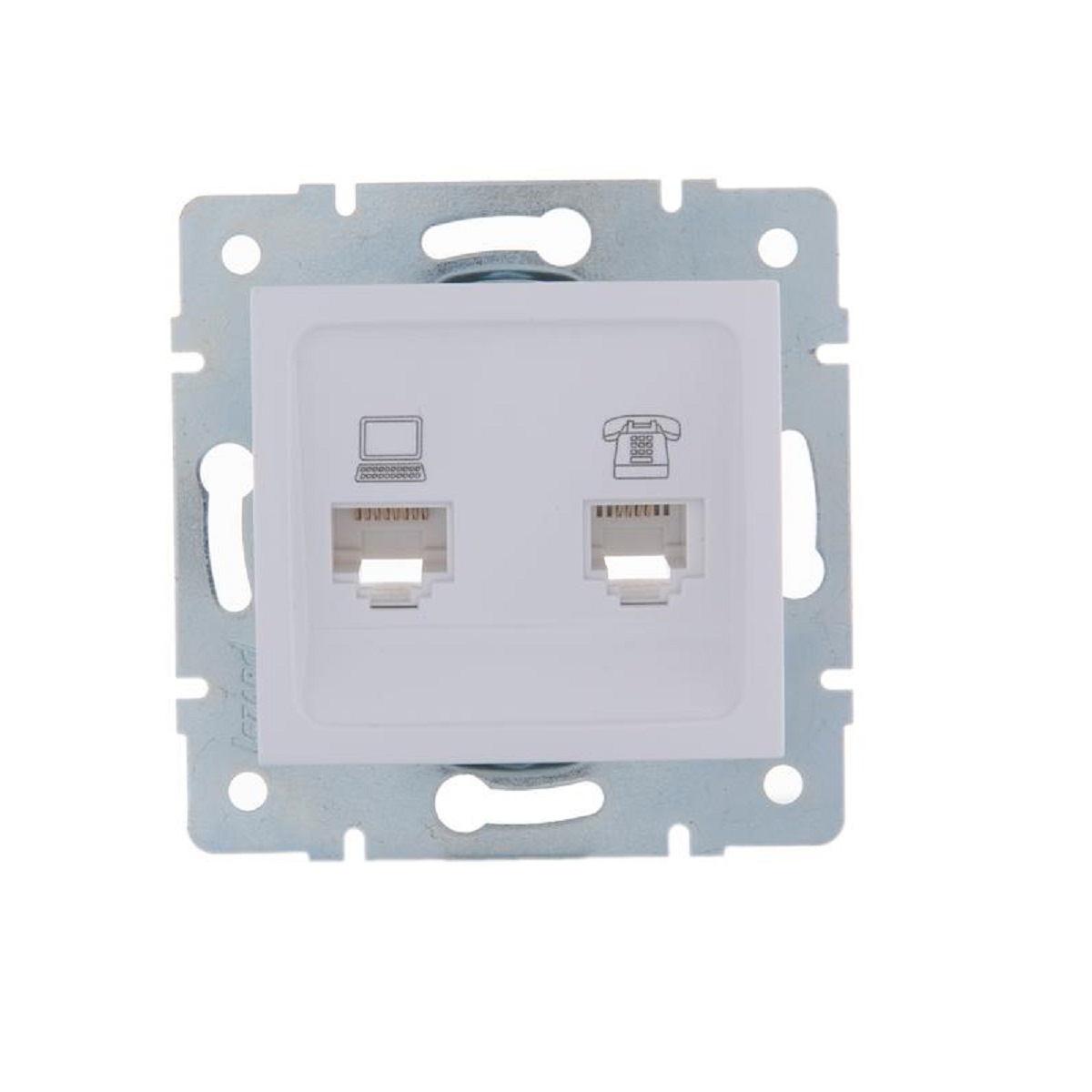 Розетка 2-ая комп. + тел. Lezard Karina белая 707-...