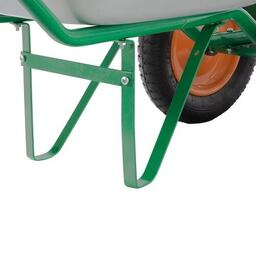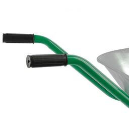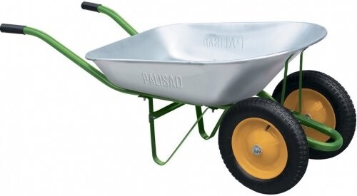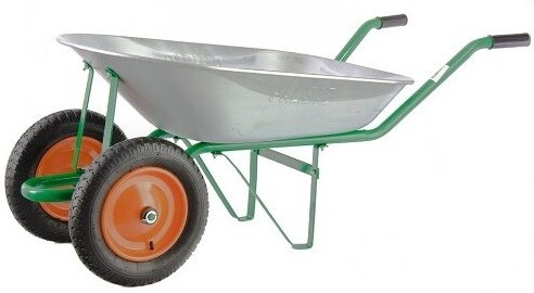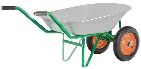 садовая тачка с двумя колесами, с кузовом из прочной оцинкованной стали, объем 78 литров, максимальный допустимый вес груза 170 кг;