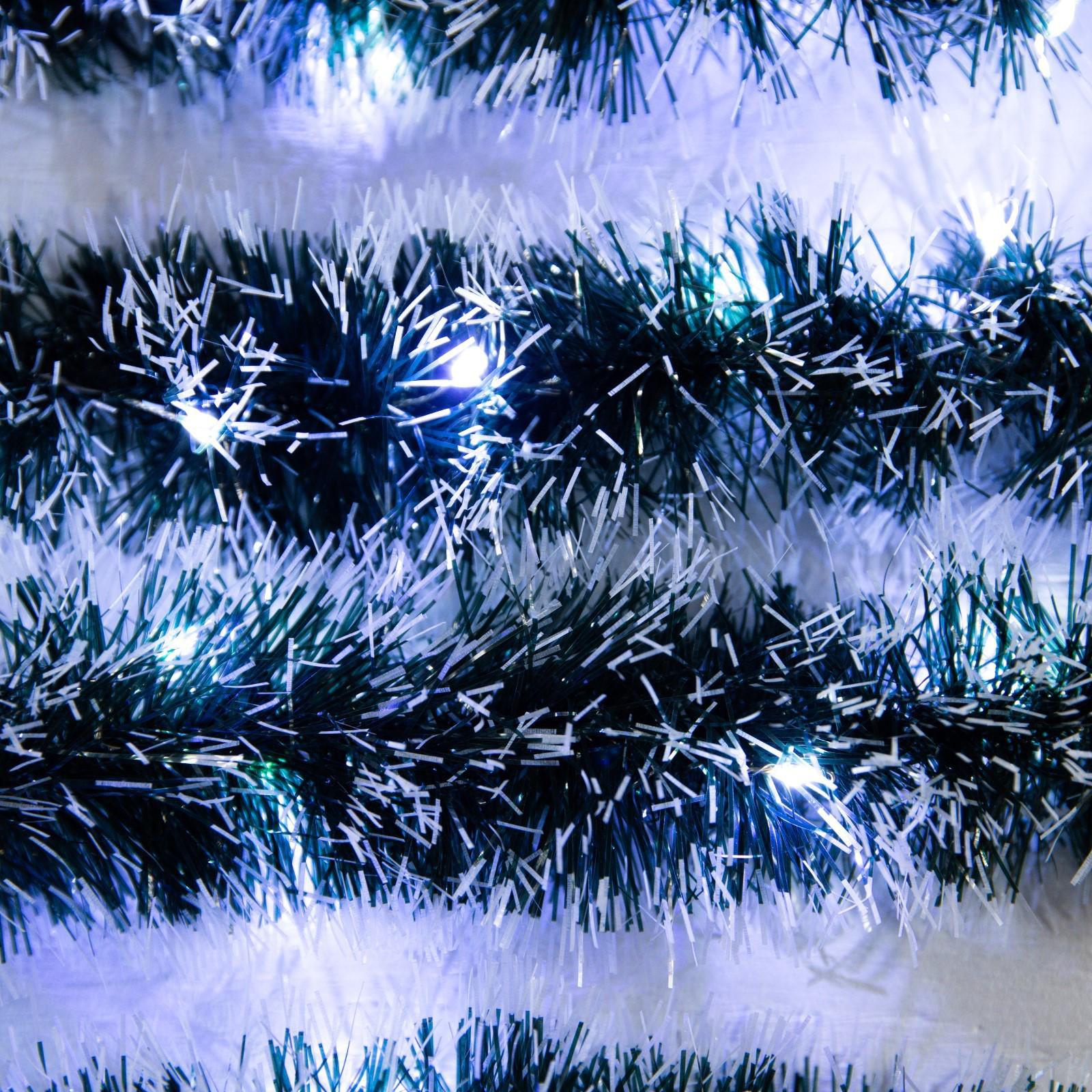 Гирлянда «Мишура» 1 м роса, IP20, зелёно-белая нить, 22 LED, 6 слоёв, d=7 см, свечение белое, CR2032х2