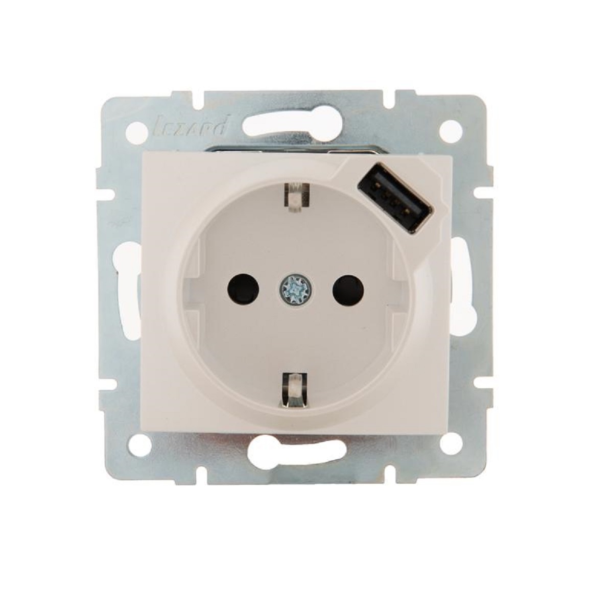 Розетка с зазем. + USB-разъём Lezard Karina белый ...