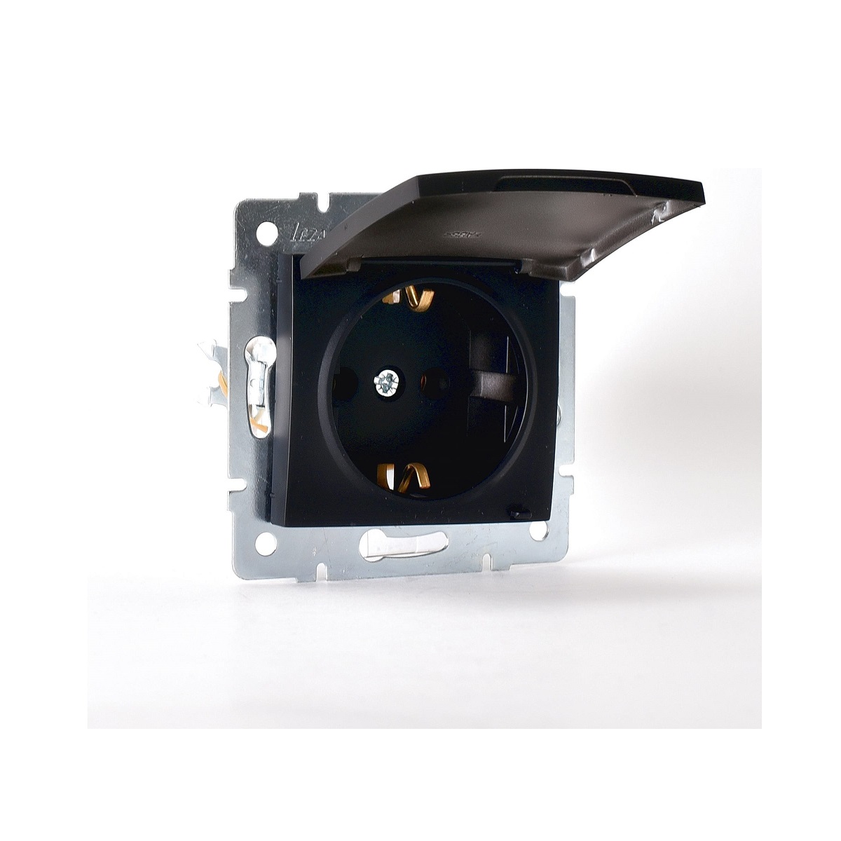 Розетка с зазем. с крышкой Lezard Karina черная 70...
