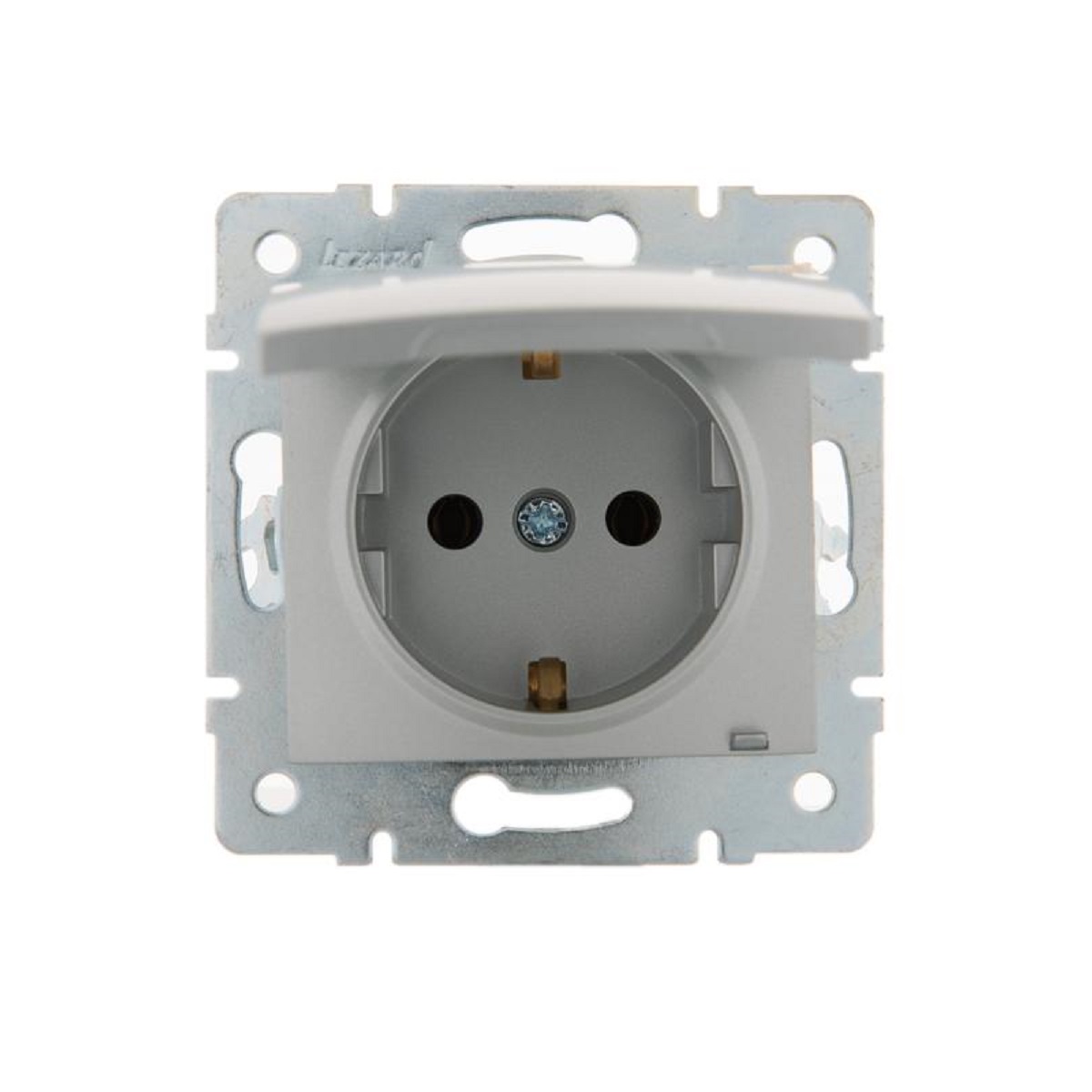 Розетка с зазем. с крышкой Lezard Karina серебро 7...