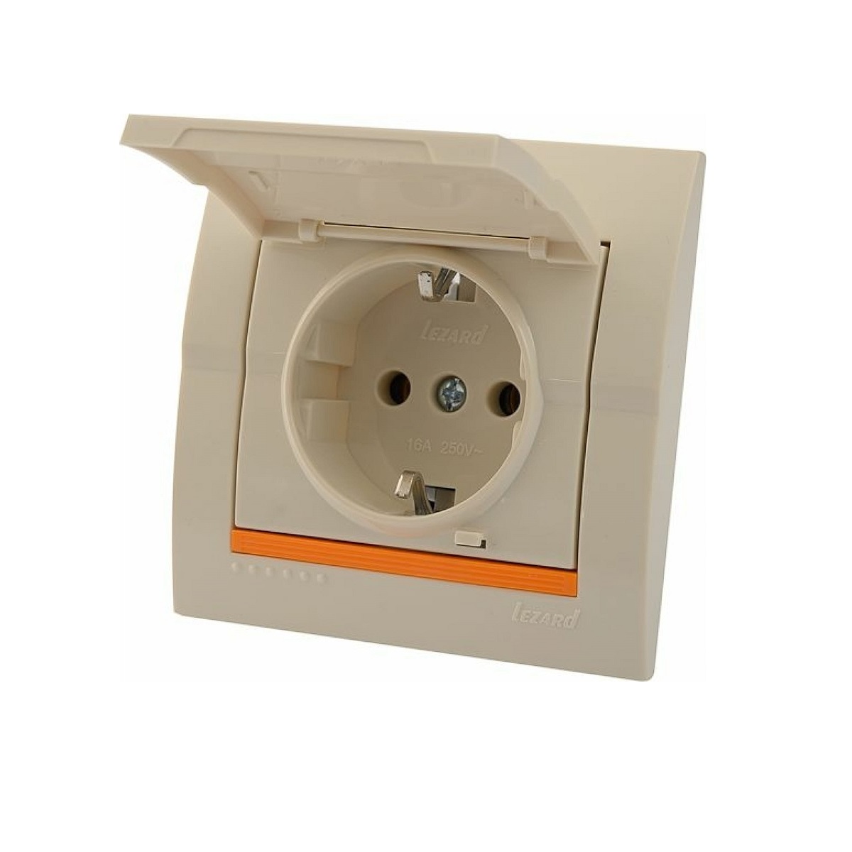 Розетка с зазем. с крышкой Lezard Deriy кремовая 7...