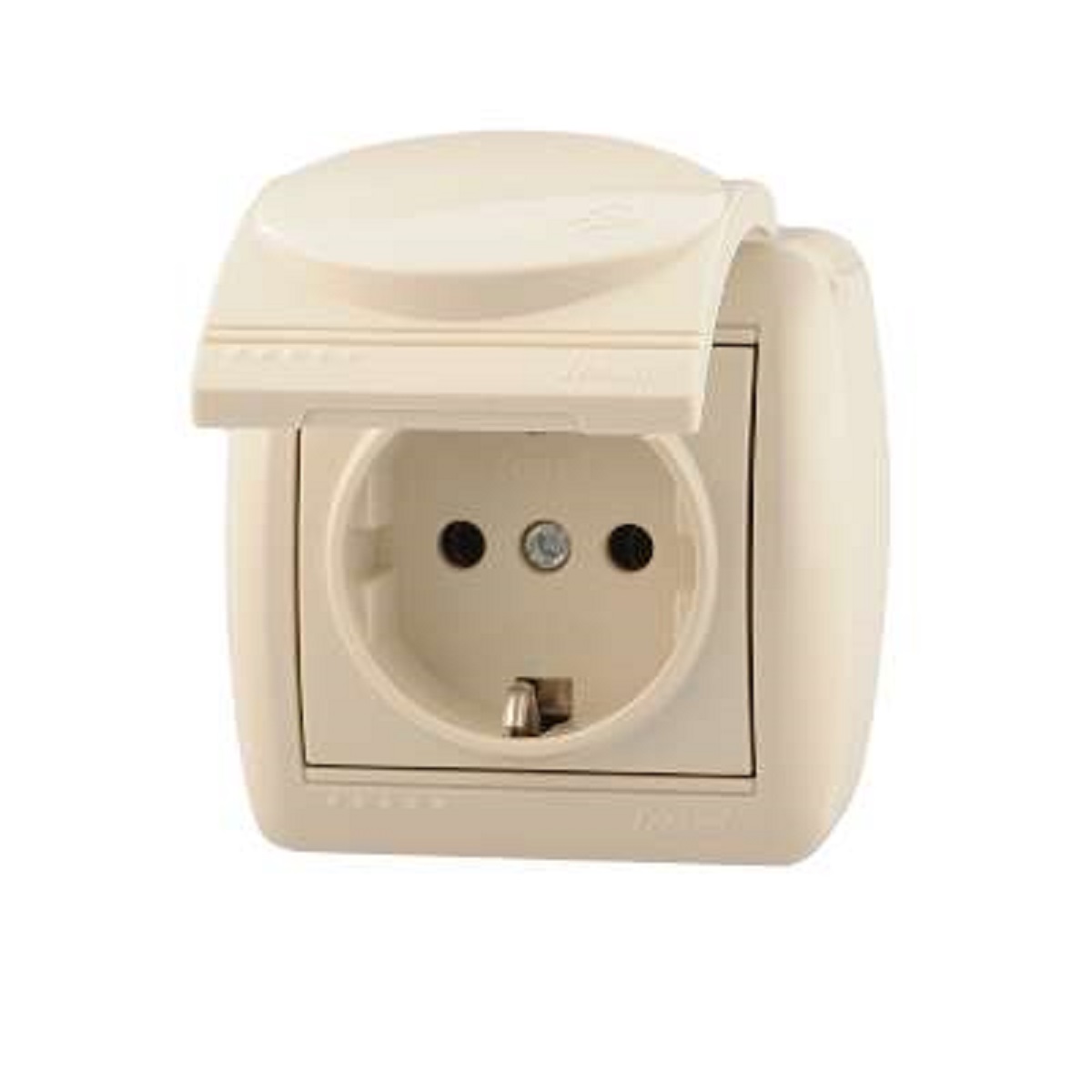 Розетка с зазем. с крышкой Lezard Nata кремовая 71...