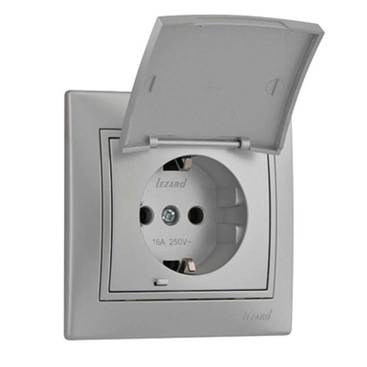 Розетка с зазем. с крышкой Lezard Mira серебро 701...