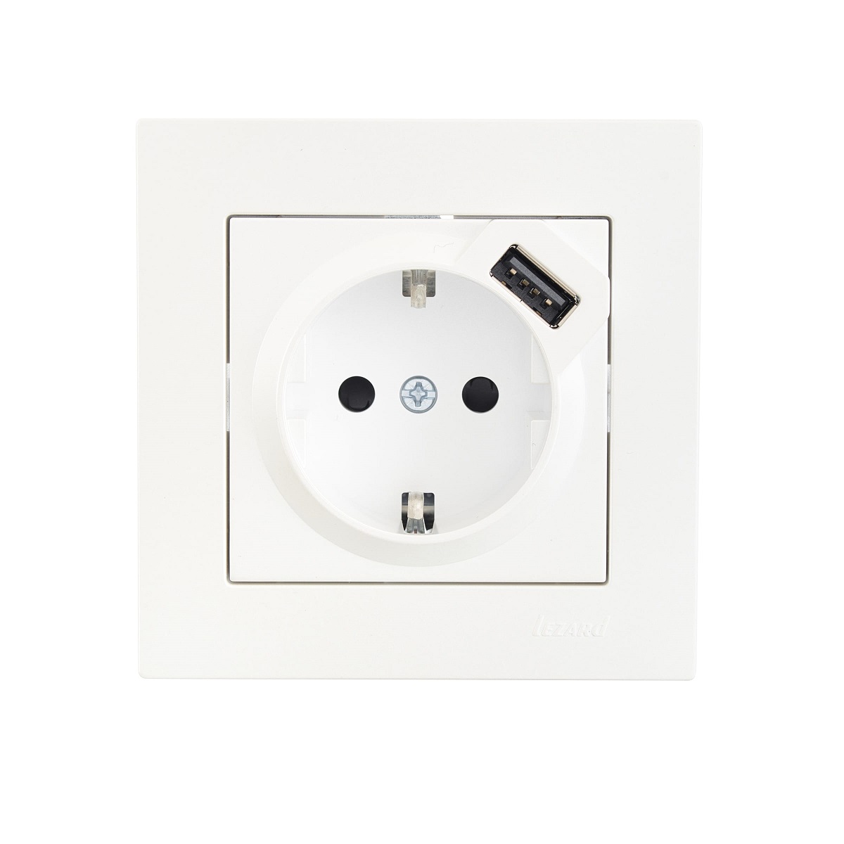 Розетка с зазем. + USB-разъём Lezard Vesna белый ж...