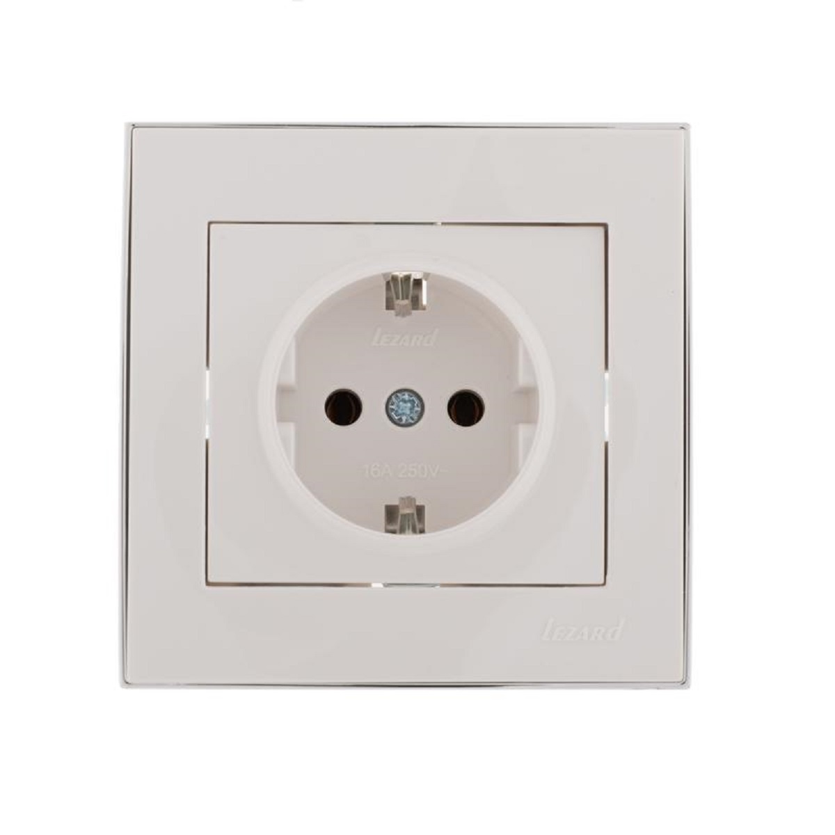 Розетка с зазем. Lezard Rain белая с бок. вст. хро...
