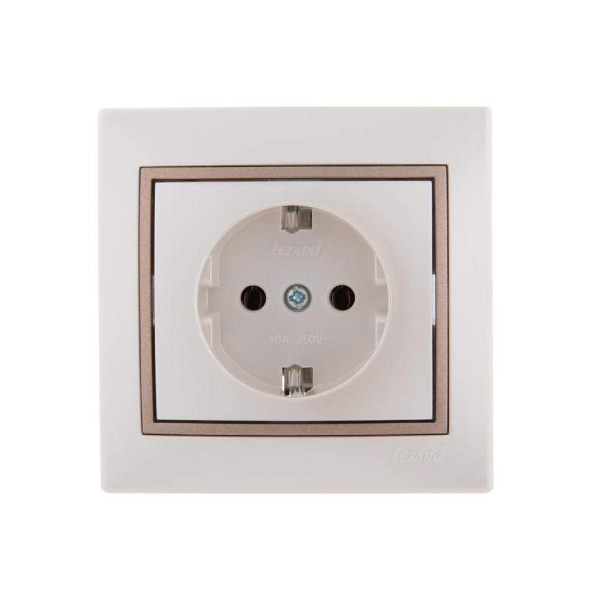 Розетка с зазем. Lezard Mira белый жемчуг с кор. в...