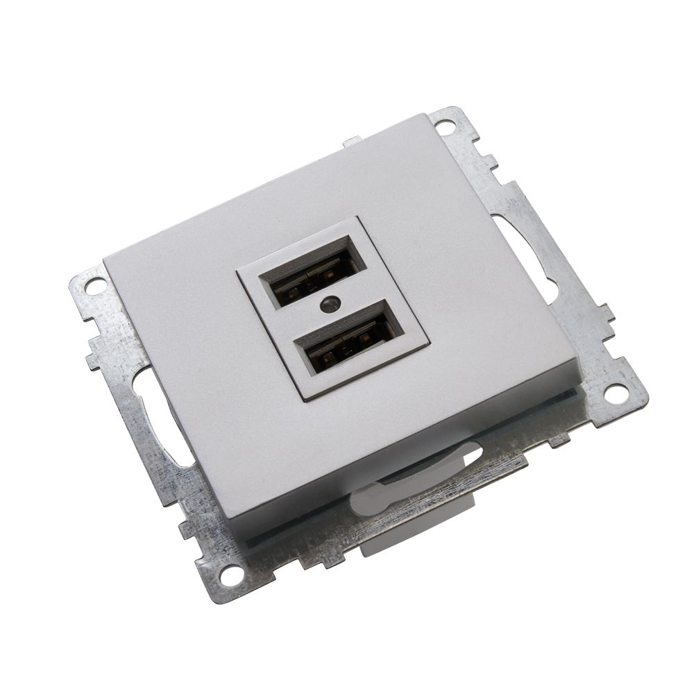Розетка 2хUSB Stekker Катрин серебро GLS10-7115-03...