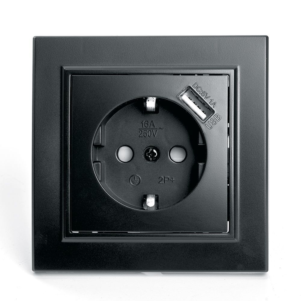 Розетка 2P+PE/USB Stekker Эрна со шторками черный ...
