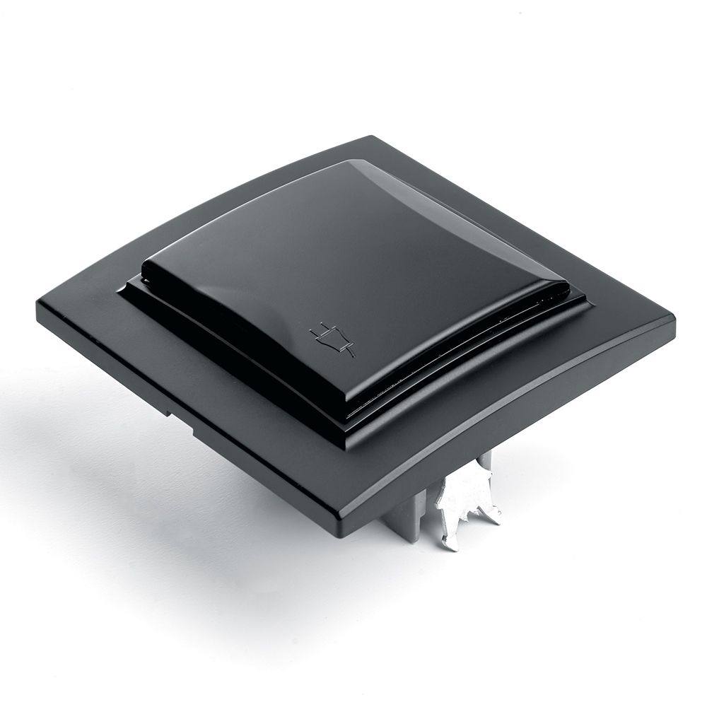 Розетка 2P+PE Stekker Эрна со шторками крышкой чер...