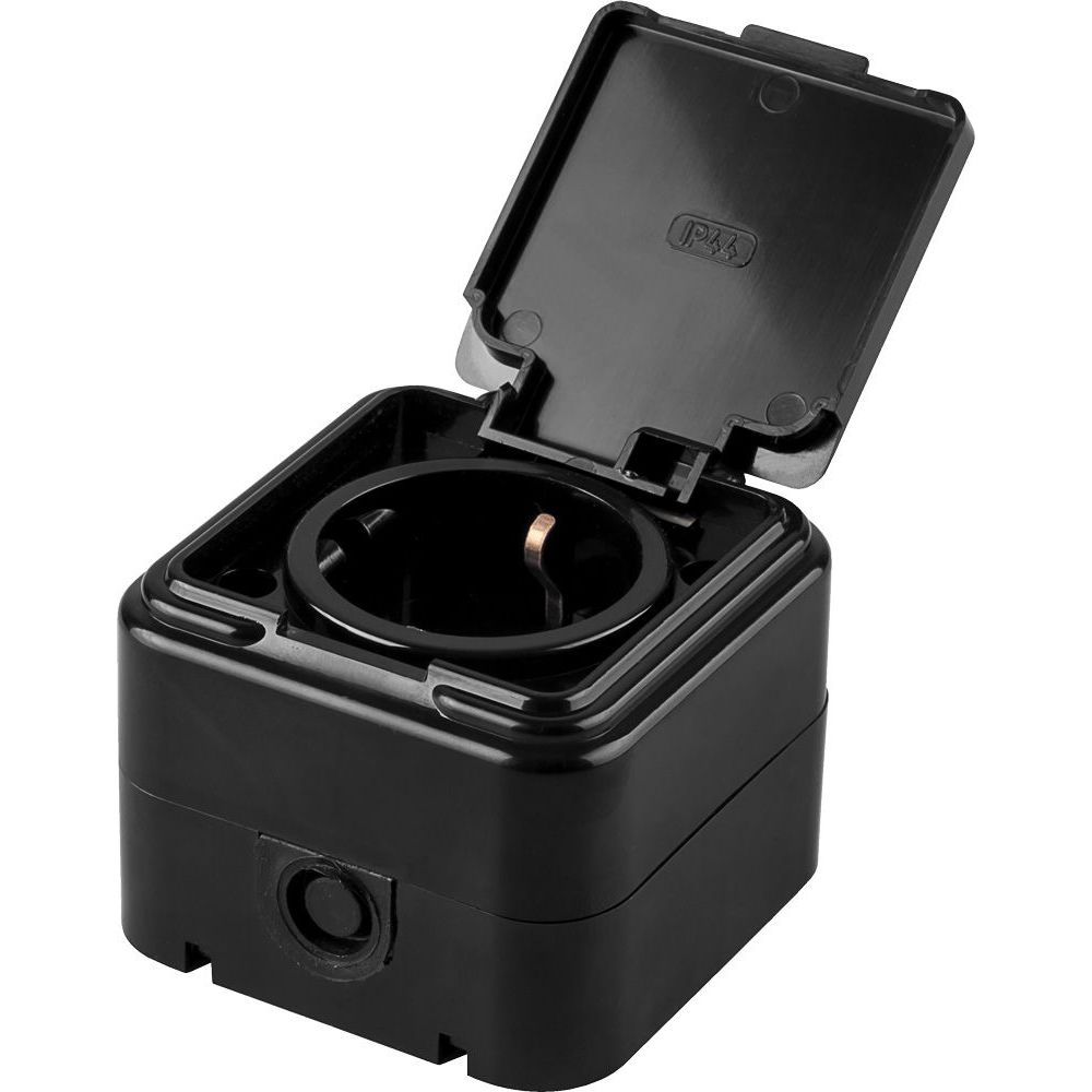 Розетка 2P+PE Stekker Брест с крышкой черный PST16...