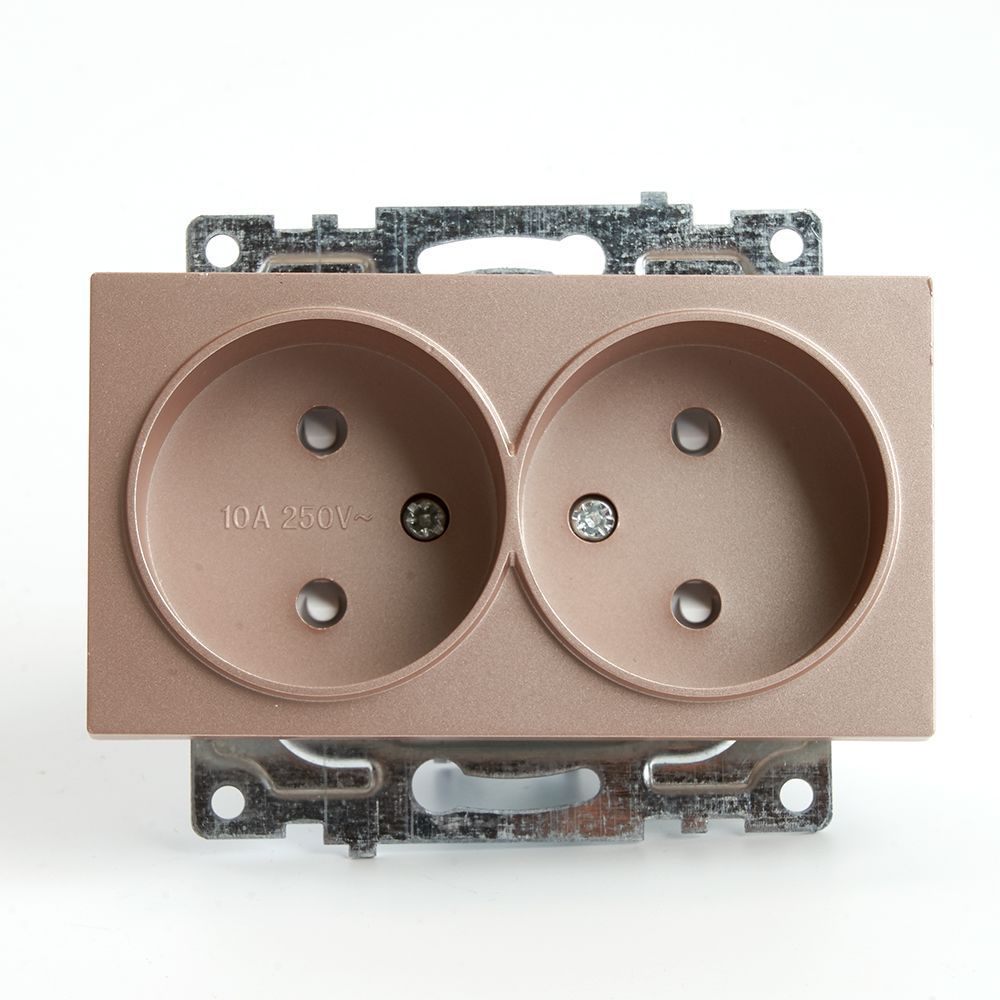 Розетка двойная 2P Stekker Катрин со шторками шамп...