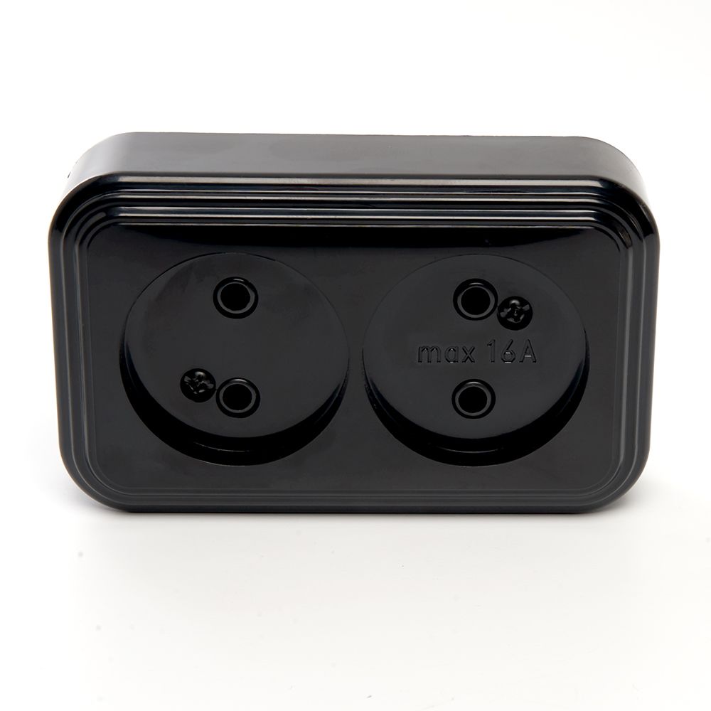 Розетка двойная 2P Stekker Брест черный PST16-30-2...