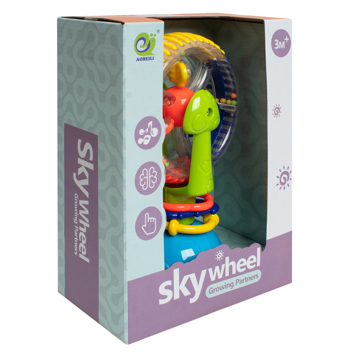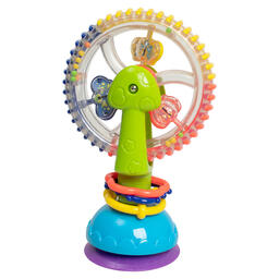 Погремушка является первой игрушкой малыша. Своим ярким цветом и звучанием она привлекает внимание малыша, развивает слуховое и пространственное восприятие — учит находить источник звука, сосредотачиваться и следить за движением игрушки. У карусели есть присоска, которая позволит крепко закрепить игрушку на гладкой поверхности, чтобы ребенок не мог ее уронить, и продолжал наслаждаться всеми звуками, которые может издать игрушка. У погремушки подвижное кольцо, внутри которого катаются пластмассовые шарики, а внутри кольца 3 яркие и подвижные бабочки.
