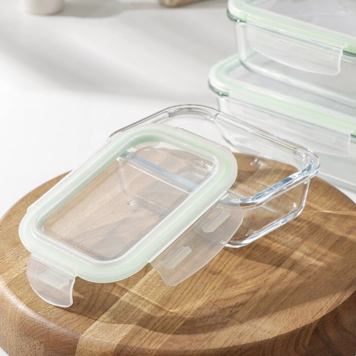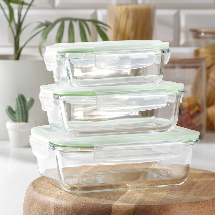 Набор контейнеров из жаропрочного стекла Доляна «Клик», 1,04 л, 0,62 л, 0,38 л, с крышкой