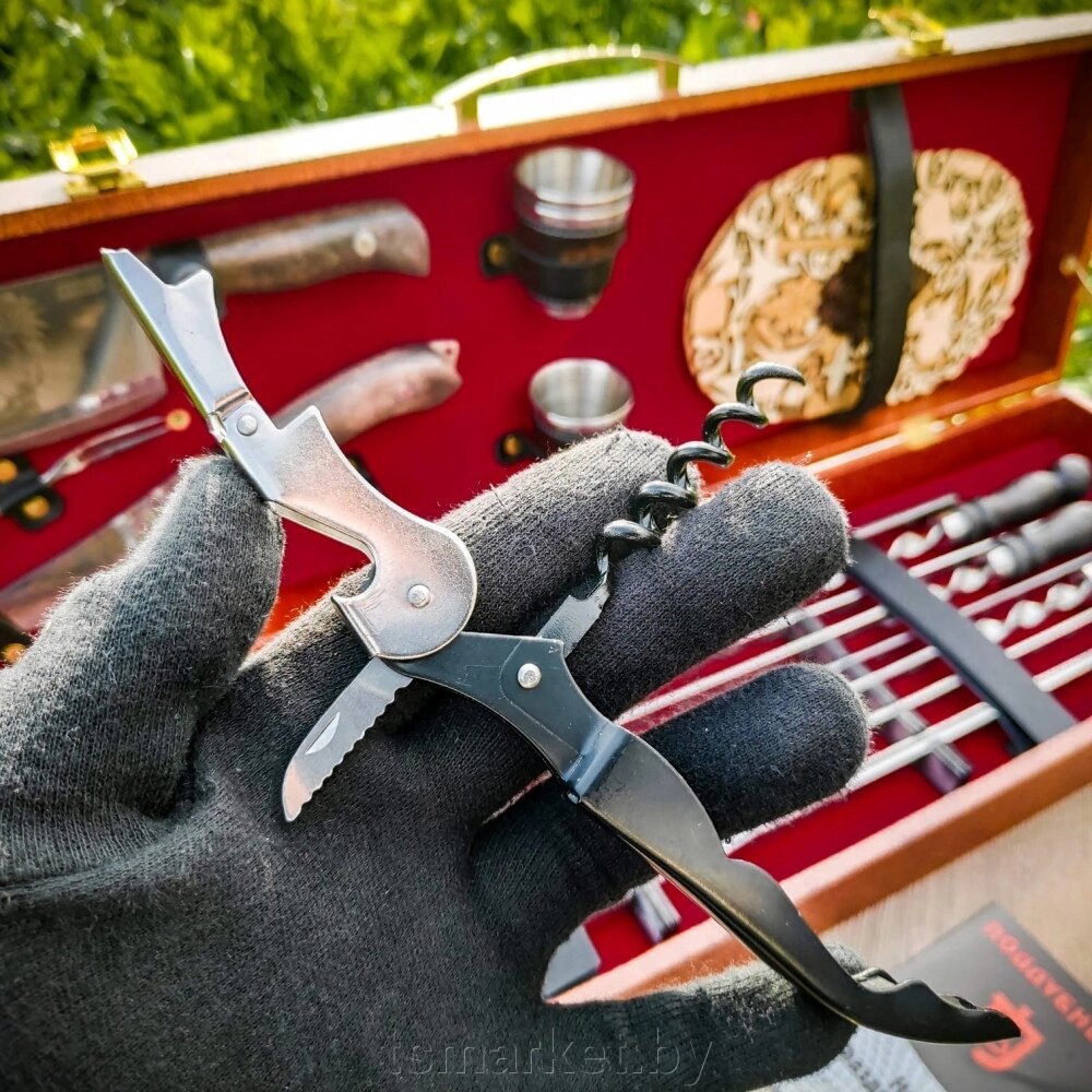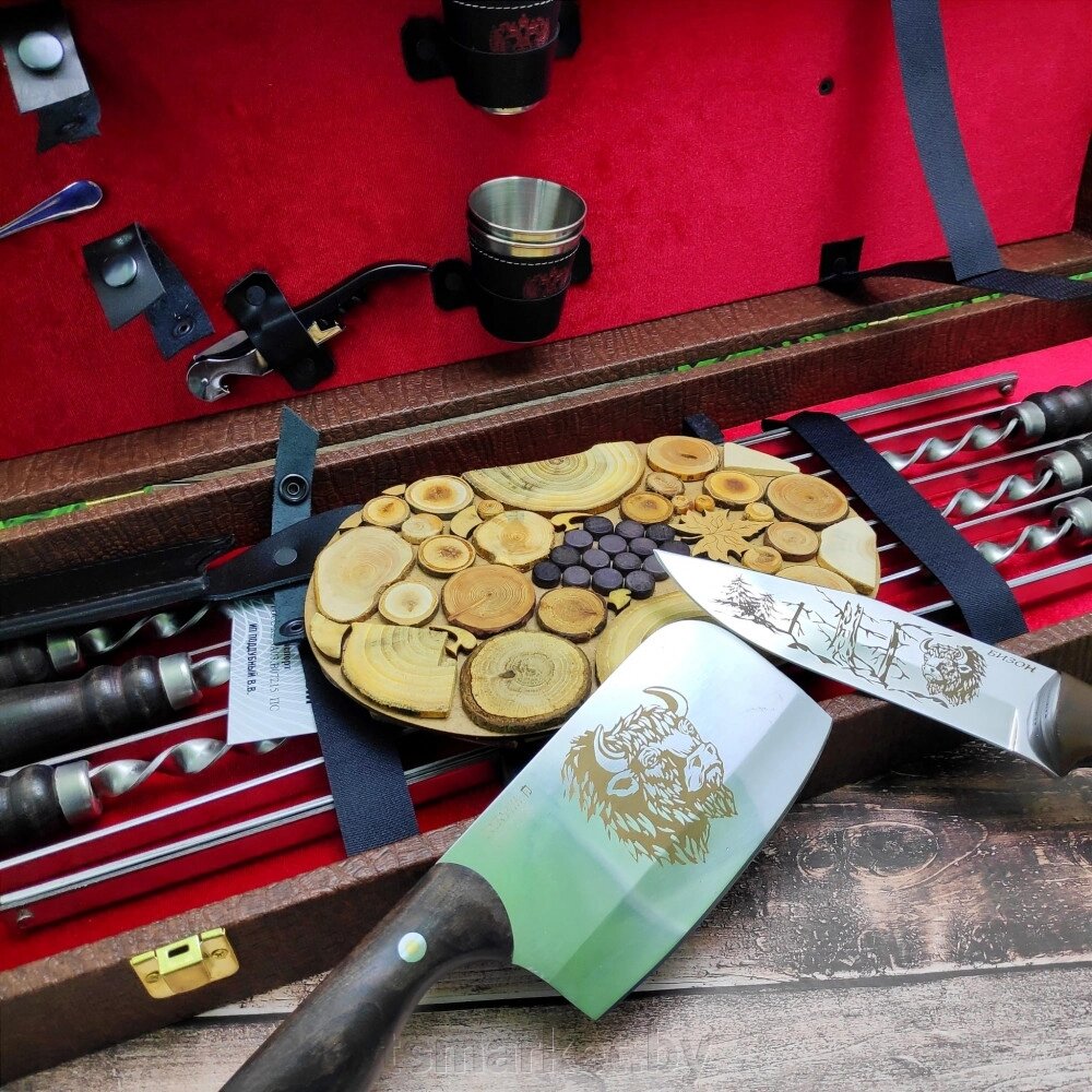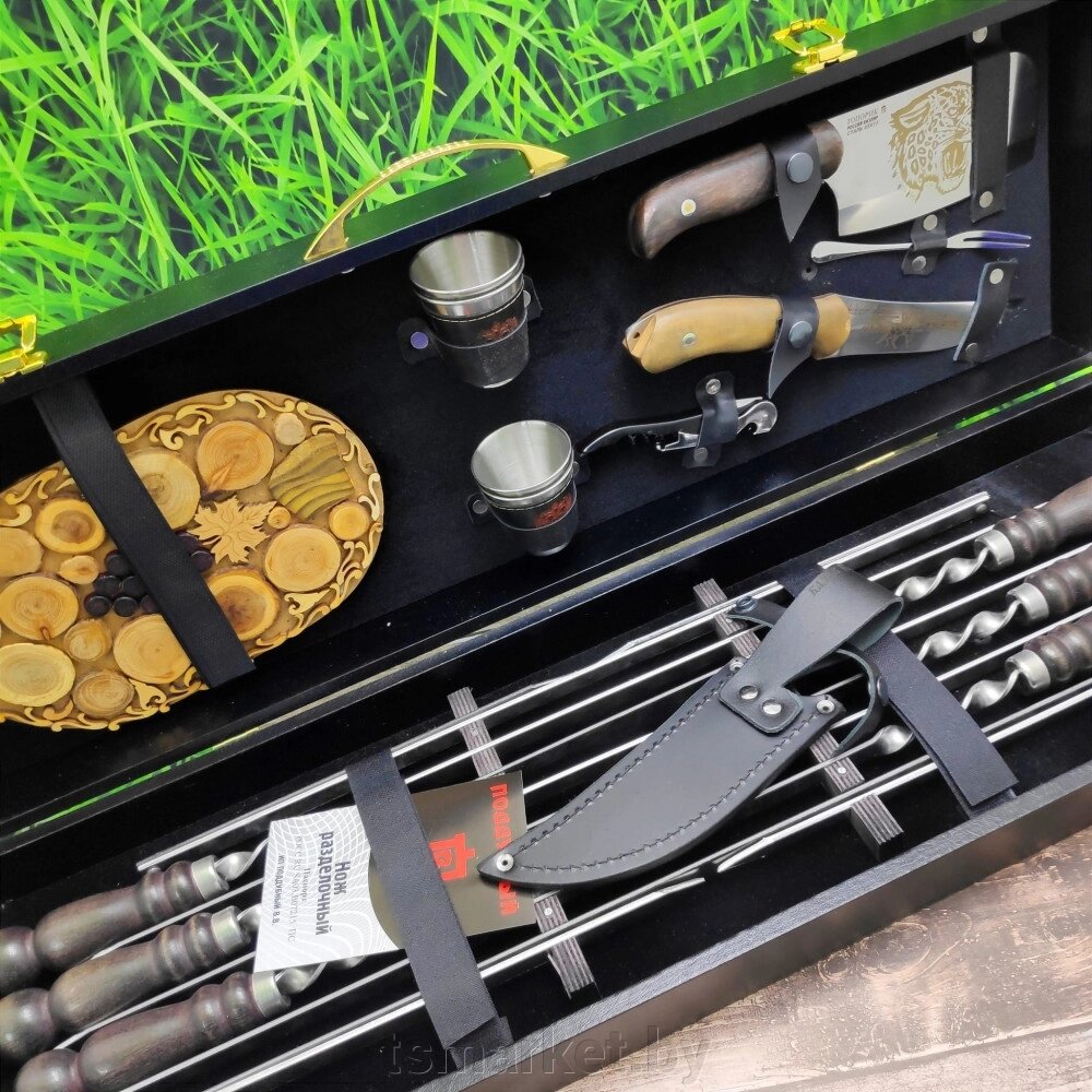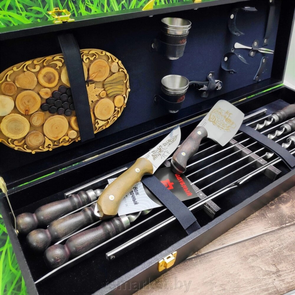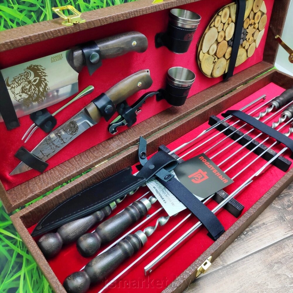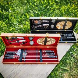 Набор для шашлыка и гриля в чемодане «Царский №8» 16 предметов с подставкой для горячего
