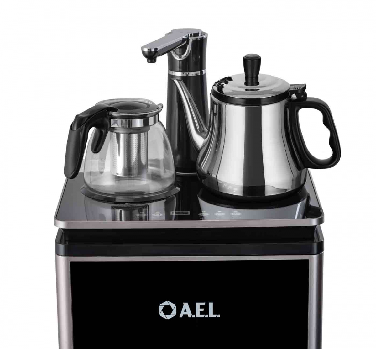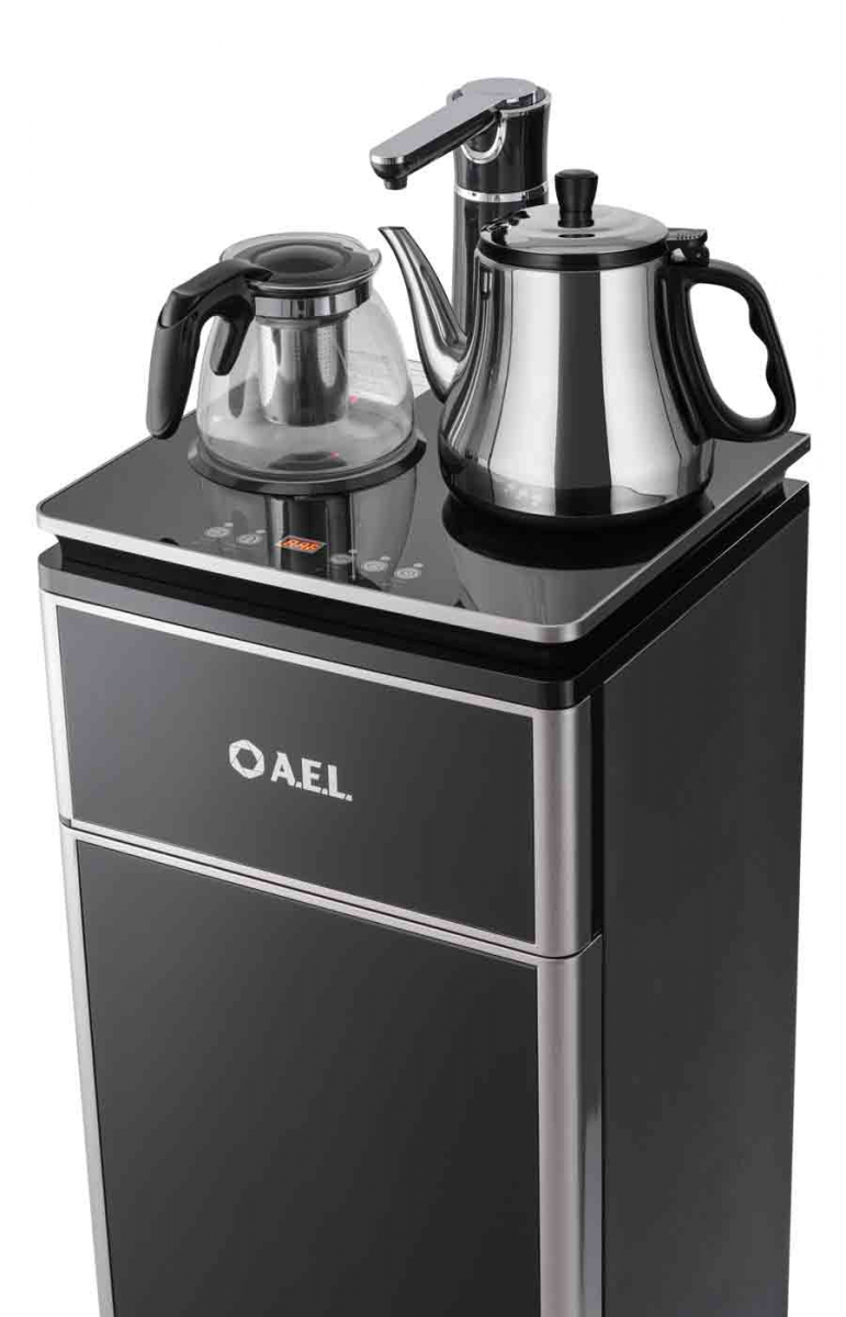 Оригинальное исполнение пурифайера с UF-фильтрацией состоит из заварочного и электрического чайников, сенсорной панели управления, удобного крана подачи воды и шкафчика для хранения. Яркая световая индикация и информативный дисплей на сенсорной панели сообщат о текущем режиме и подключении к сети. Встроена защитная система от случайного нажатия и система подогрева заварного чайника, которая позволяет поддерживать температуру до 24 часов.
