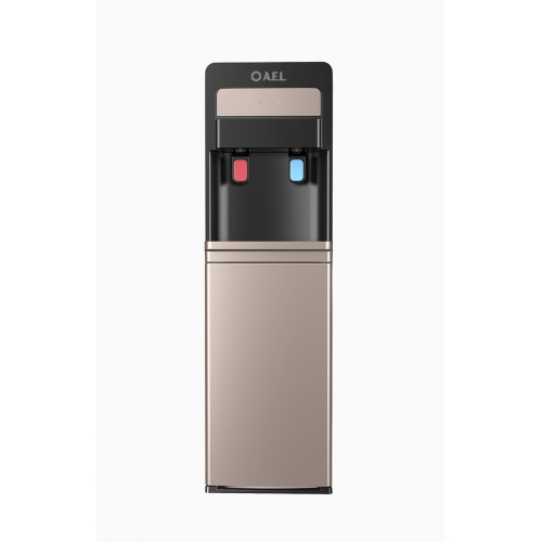 Новинка в ассортименте АЕЛ - кулер с нижней загрузкой бутыли с электронным охлаждением. Цвет: черный с золотой вставкой. Модель оснащена двумя краниками нажим кружкой (горячая/холодная).