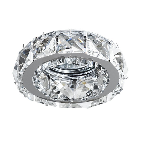 Врезное отверстие: d60 h60 Внешние габариты: D98 H25 Материал - основание/плафон: металл / Crystalline Цвет-основание/плафон: хром/прозрачный Лампа: 12В/220В MR16/HP16 Gu5.3/GU10 max 50Вт;