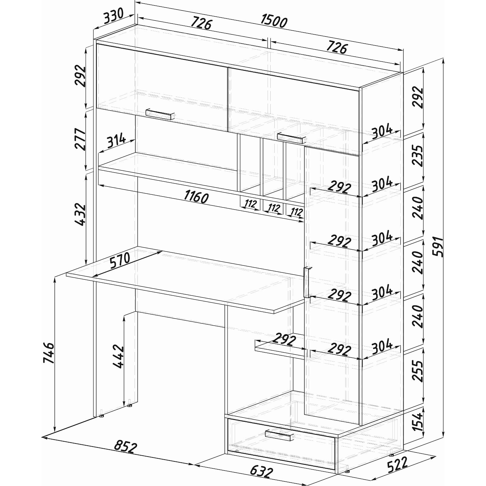 Размер ниши для монитора (Ш × Г × В): 1160 × 330 × 432 мм.