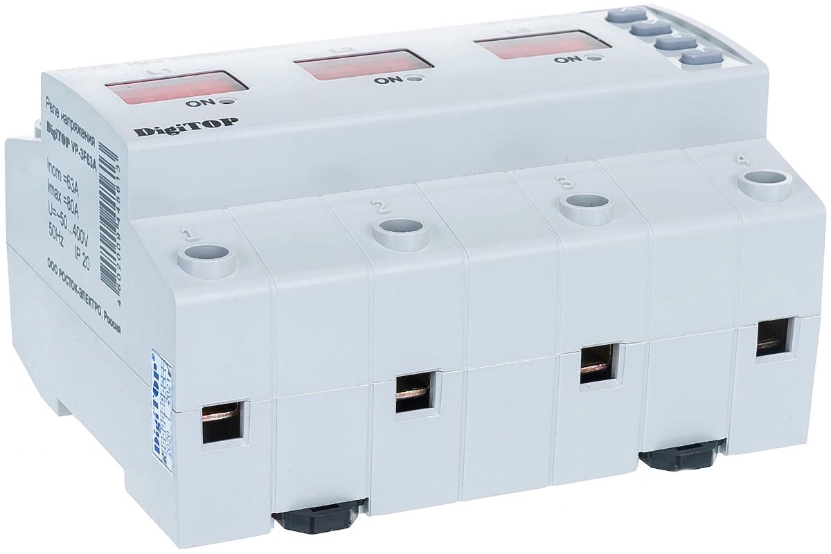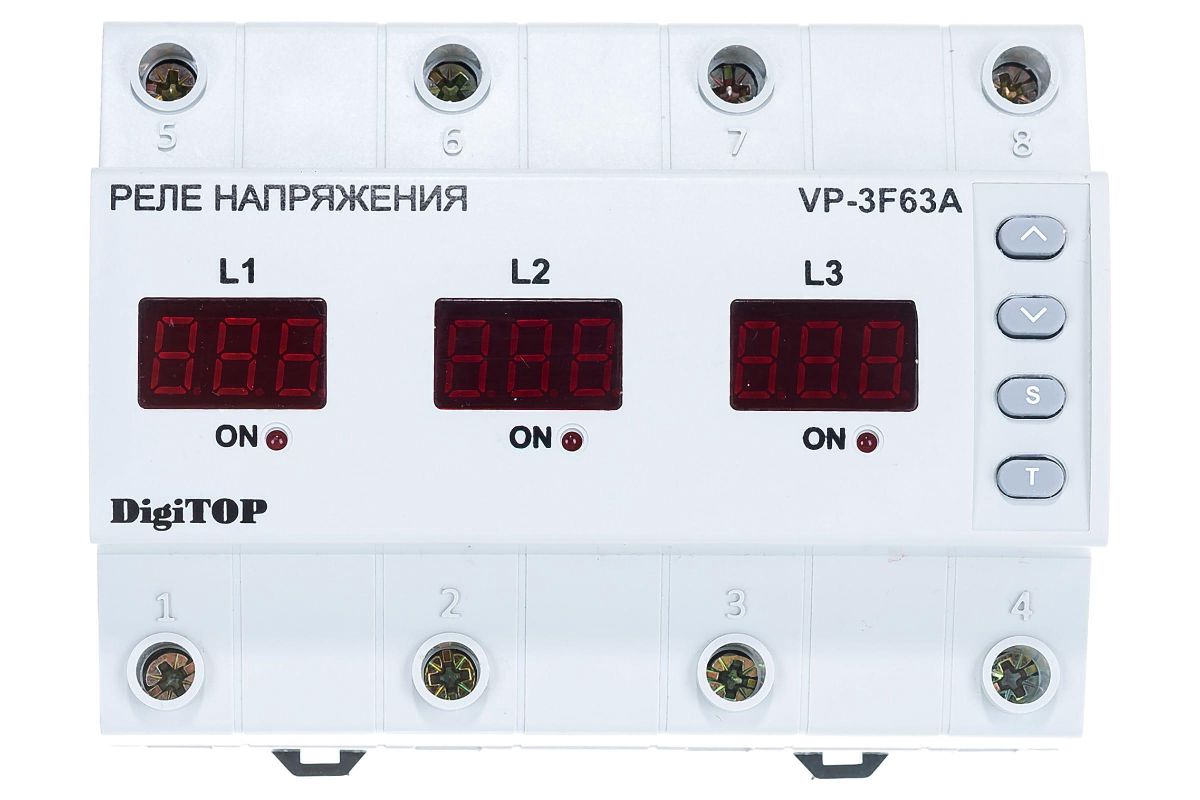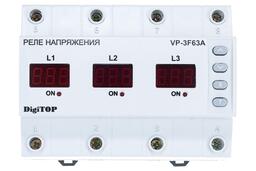 Реле напряжения DigiTOP Vp-3F63A подойдет для защиты однофазного и трехфазного оборудования от повышенного или пониженного напряжения.
