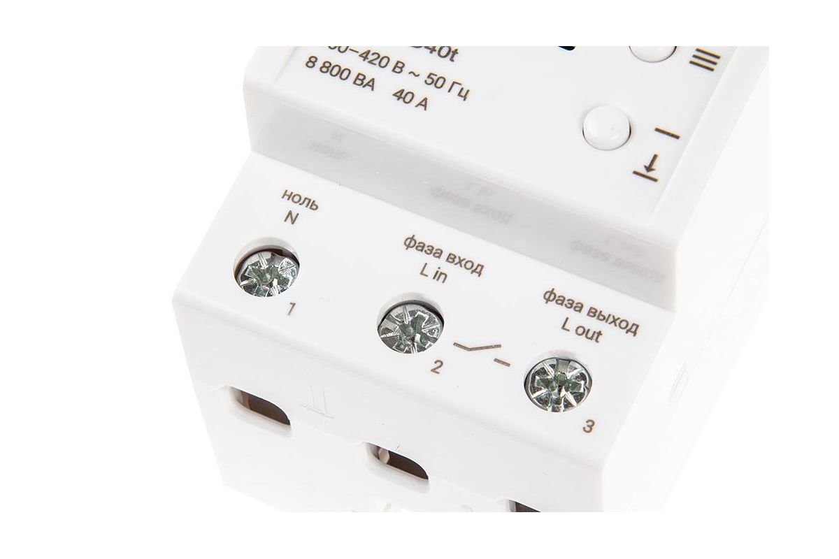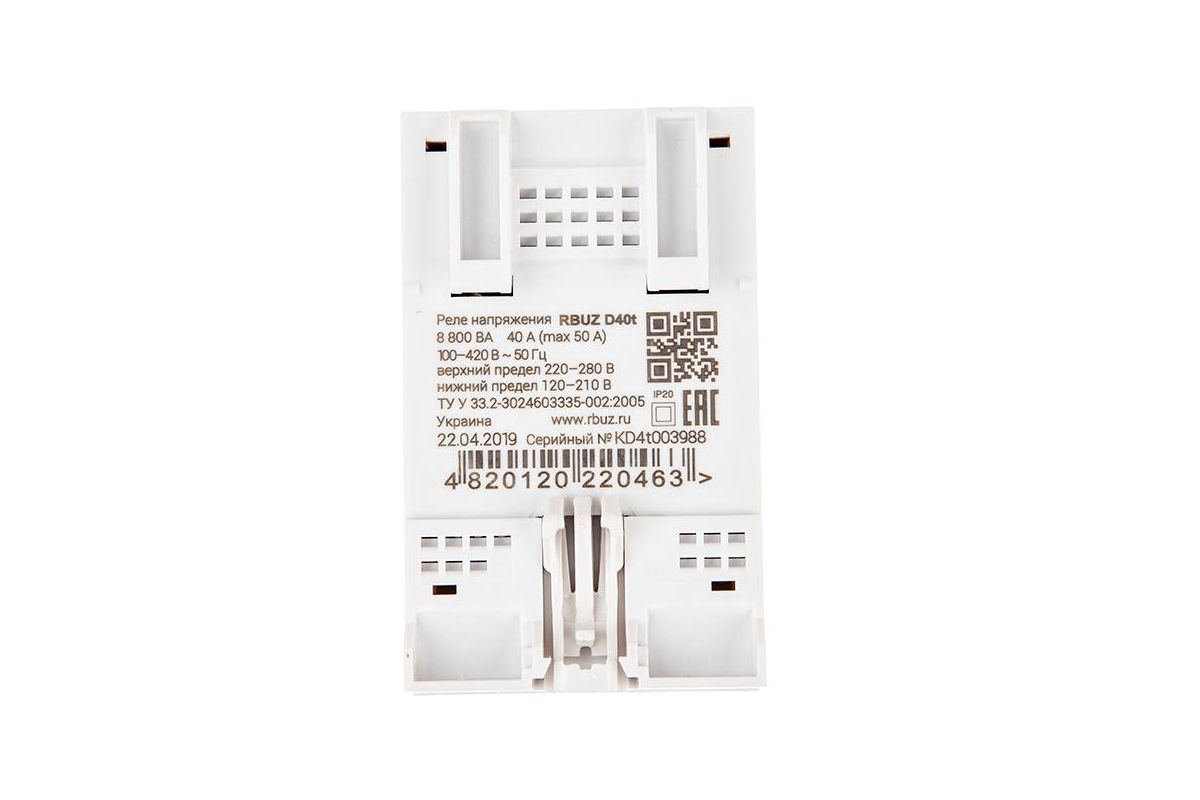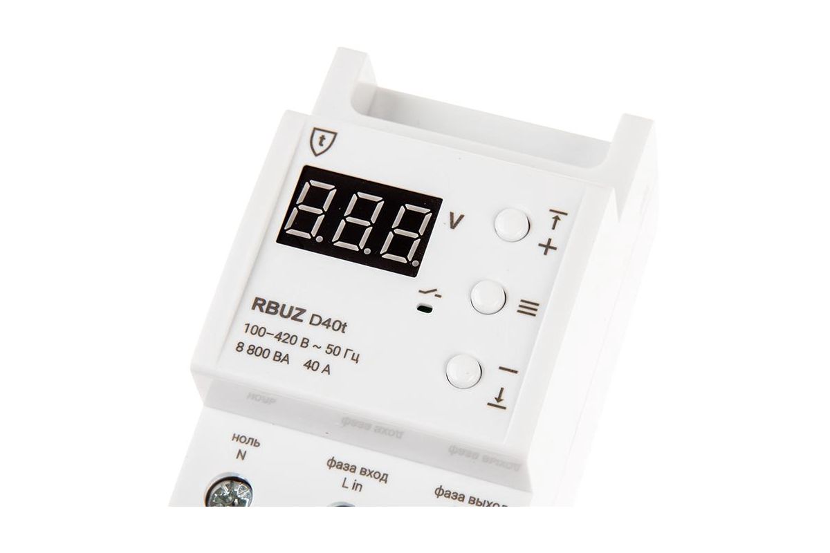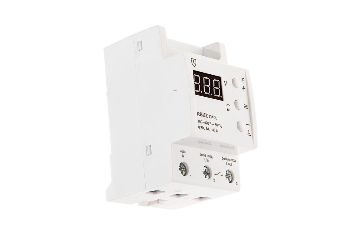 Реле напряжения RBUZ D40t термозащита. 40 А. 8 800 ВА. 100–400 В. Настройка времени задержки вкл.