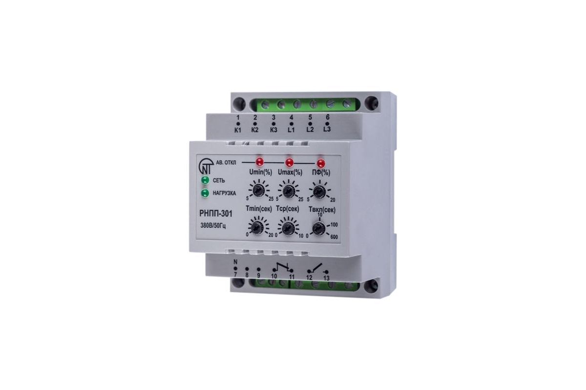 Реле напряжения РНПП-301 предназначено для защиты трехфазных потребителей от основных видов аварий в электрической сети, таких как выход действующего значения напряжения за пределы допустимых порогов, нарушение последовательности и слипание фаз, нарушение полнофазности и симметричности сетевого напряжения.