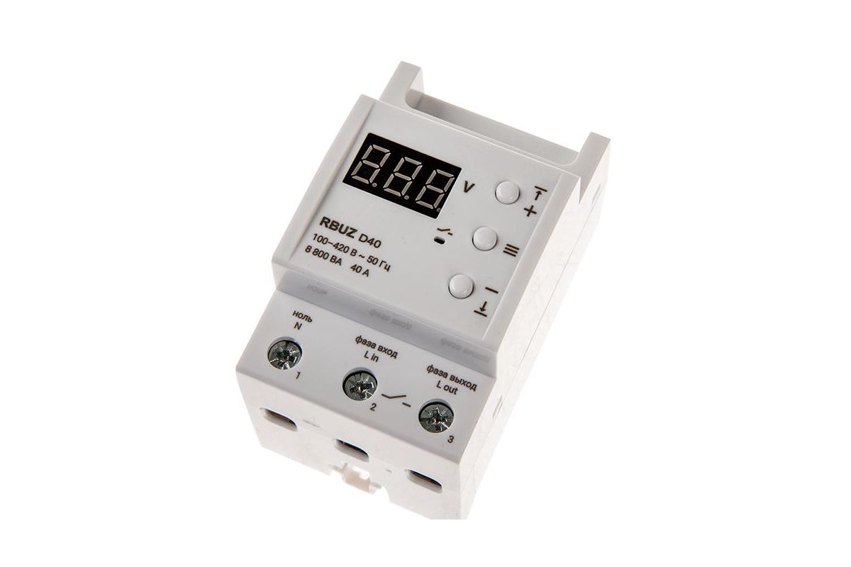 Реле напряжения RBUZ D40 40 А. 8 800 ВА. 100–400 В. Настройка времени задержки включения