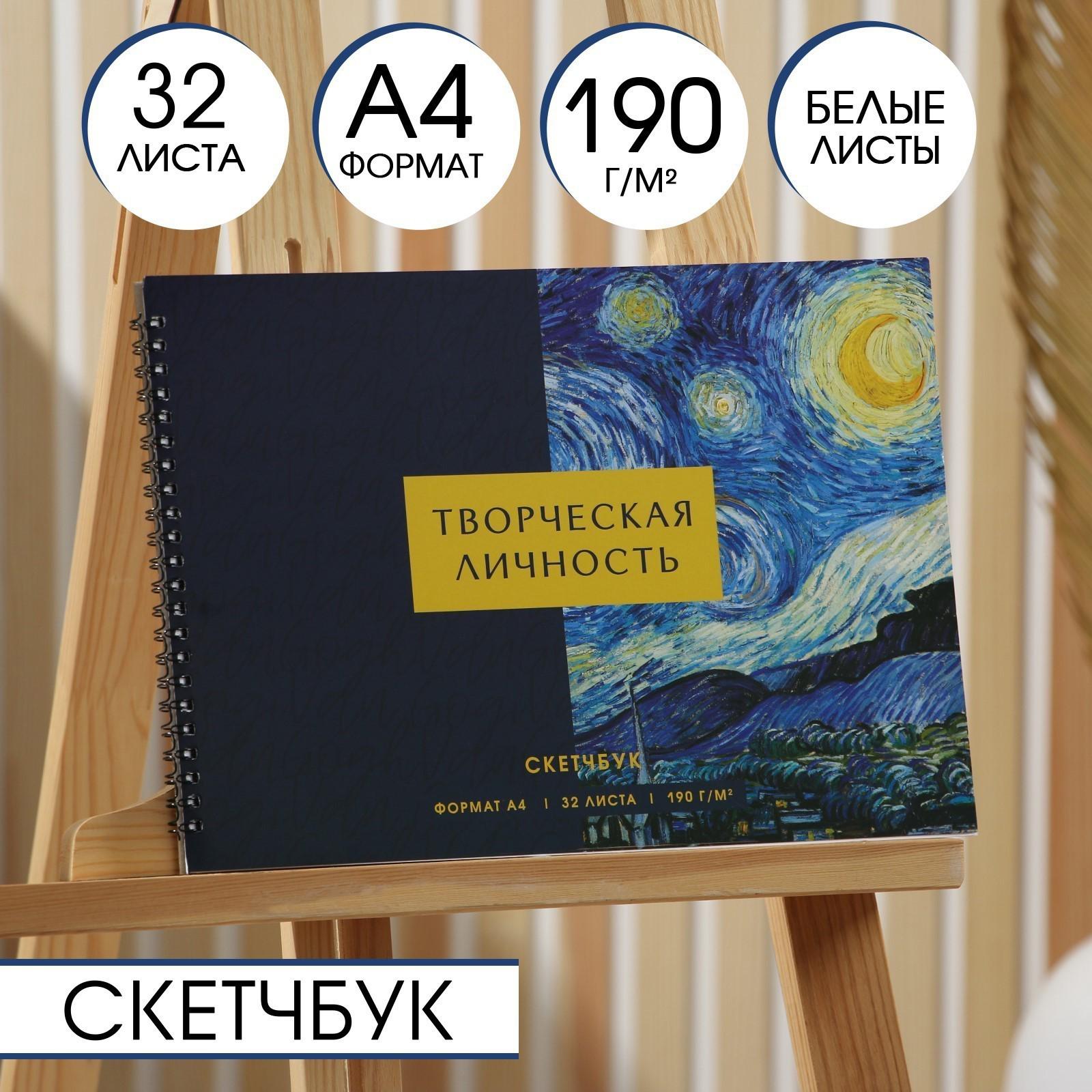 Скетчбук А4, 32 листа, 190 г/м2 "Творческая личность"