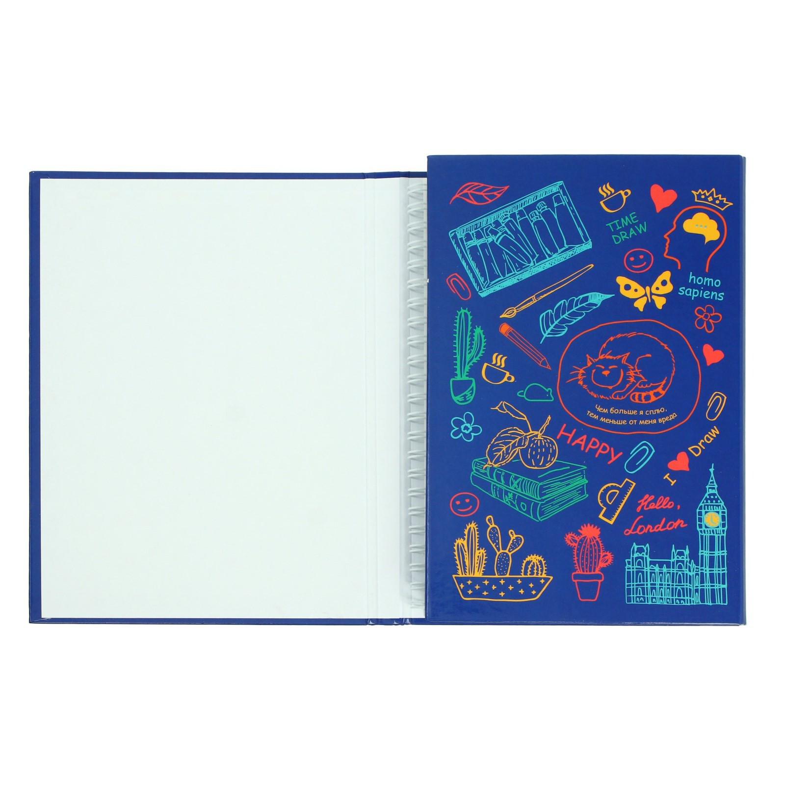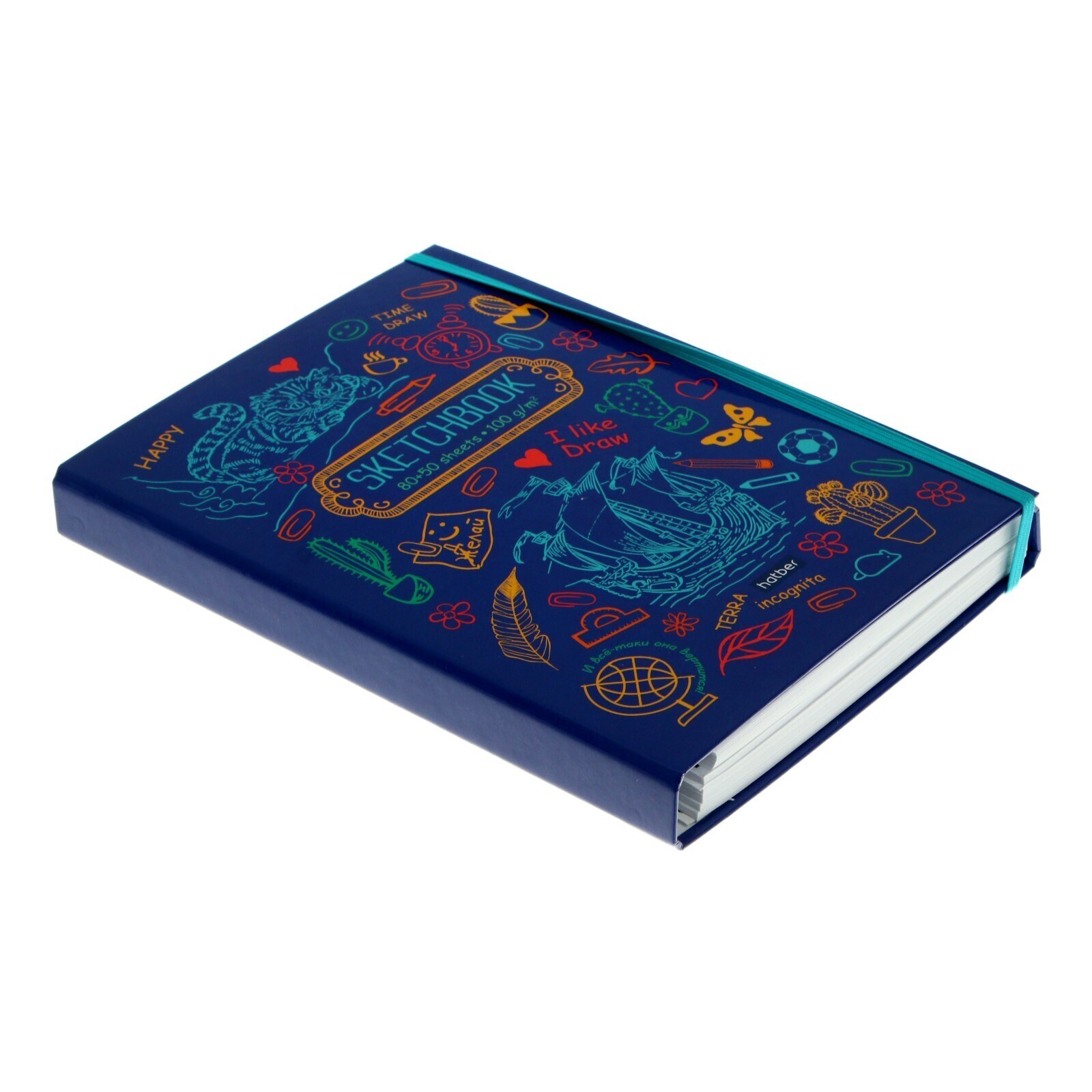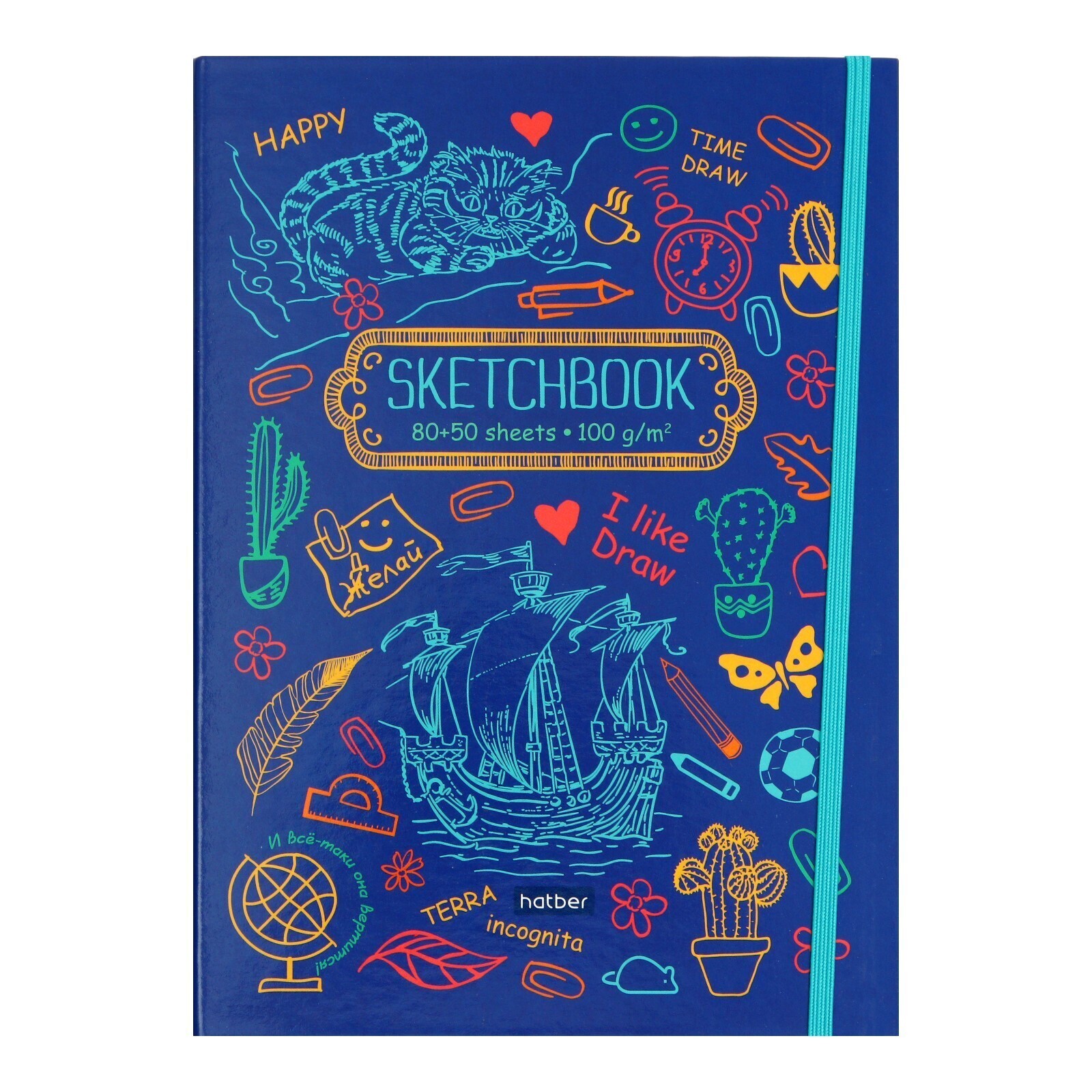 Скетчбук А5, 80+50 листов на гребне Hand draw, твёрдая обложка, с клапаном, на резинке, блок 100 г/м2