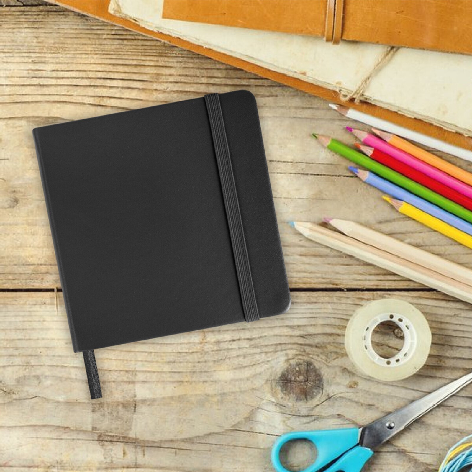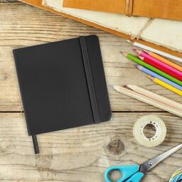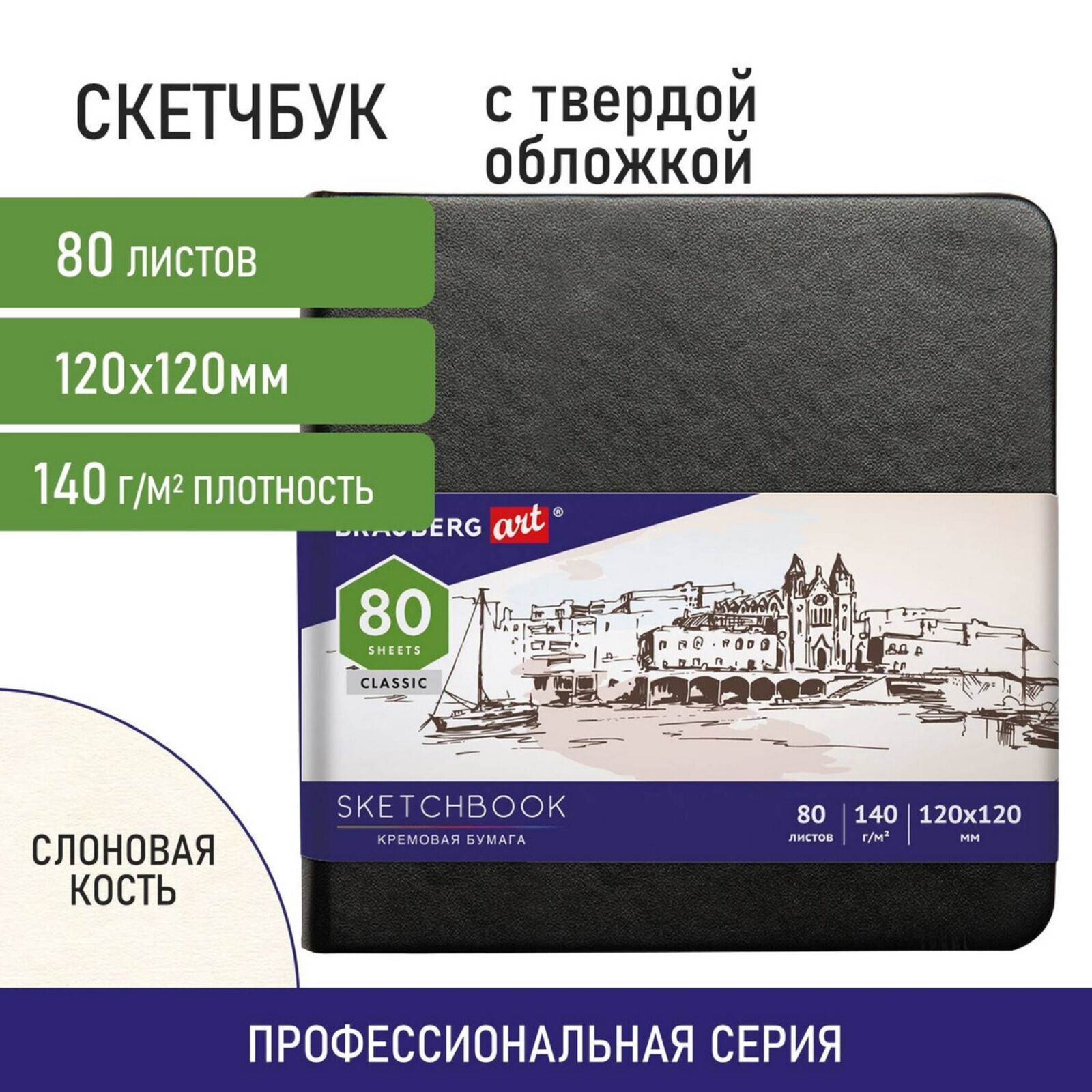 Скетчбук, слоновая кость 140 г/м2 120х120 мм, 80 л., КОЖЗАМ, резинка, BRAUBERG ART CLASSIC, черный,